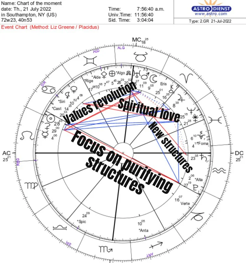 Jupiter and Saturn form a semi-square today, and when we think in big terms, or if we have the urge to expand, we confront obstacles, or we need to face reality. Some re-structuring of our lives and our business goals is in order. There is no “easy fix” just now – we need to keep working hard and can make good progress, even if there are fits and starts. It is best to breathe new life into old plans rather than to strike out with a new plan altogether. We should watch for overextension, which can lead to frustration. Our social and personal goals may clash at this time, requiring some adjustments.