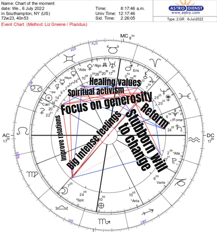 If we are preoccupied with the energy or domain of that planet, the chance that various things will start getting through to us is better, of course, and we will also begin to recognize this kind of planet sooner that way. But a long running start is still needed for this, and in the meantime we are not aware to what extent those around are confronted by this unintegrated planet. Our emphasizing it means those around us will already have experienced the full weight of it and will have to endure more before we have even the slightest inkling of what we're up to. In fact, if we hear remarks or criticism about it, we will in all honesty not have a clue what they're talking about.