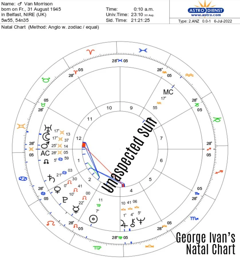 I’d like to look more closely at George Ivan “Van” Morrison’s mostly unaspected Sun. I’ll post what I can find about this below: