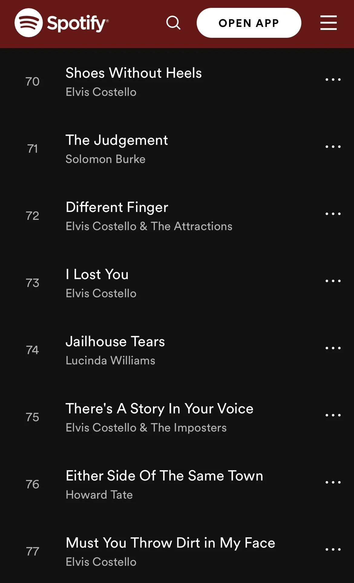 12) MUST YOU THROW DIRT IN MY FACE – Elvis Costello from “Kojak Variety”