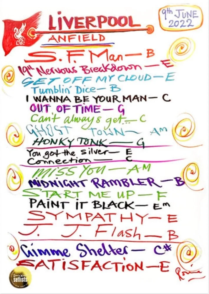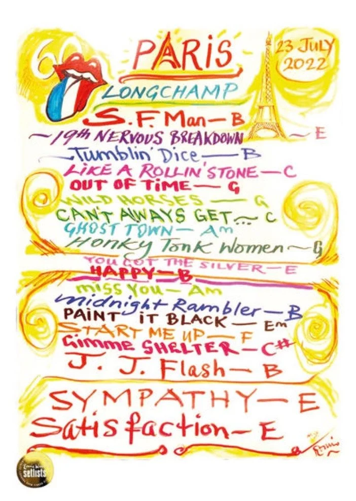 Did you know legendary guitarist Ronnie Wood is also an accomplished artist? September 10, 2022 Ronnie's art store Check out more of these beautiful setlists.