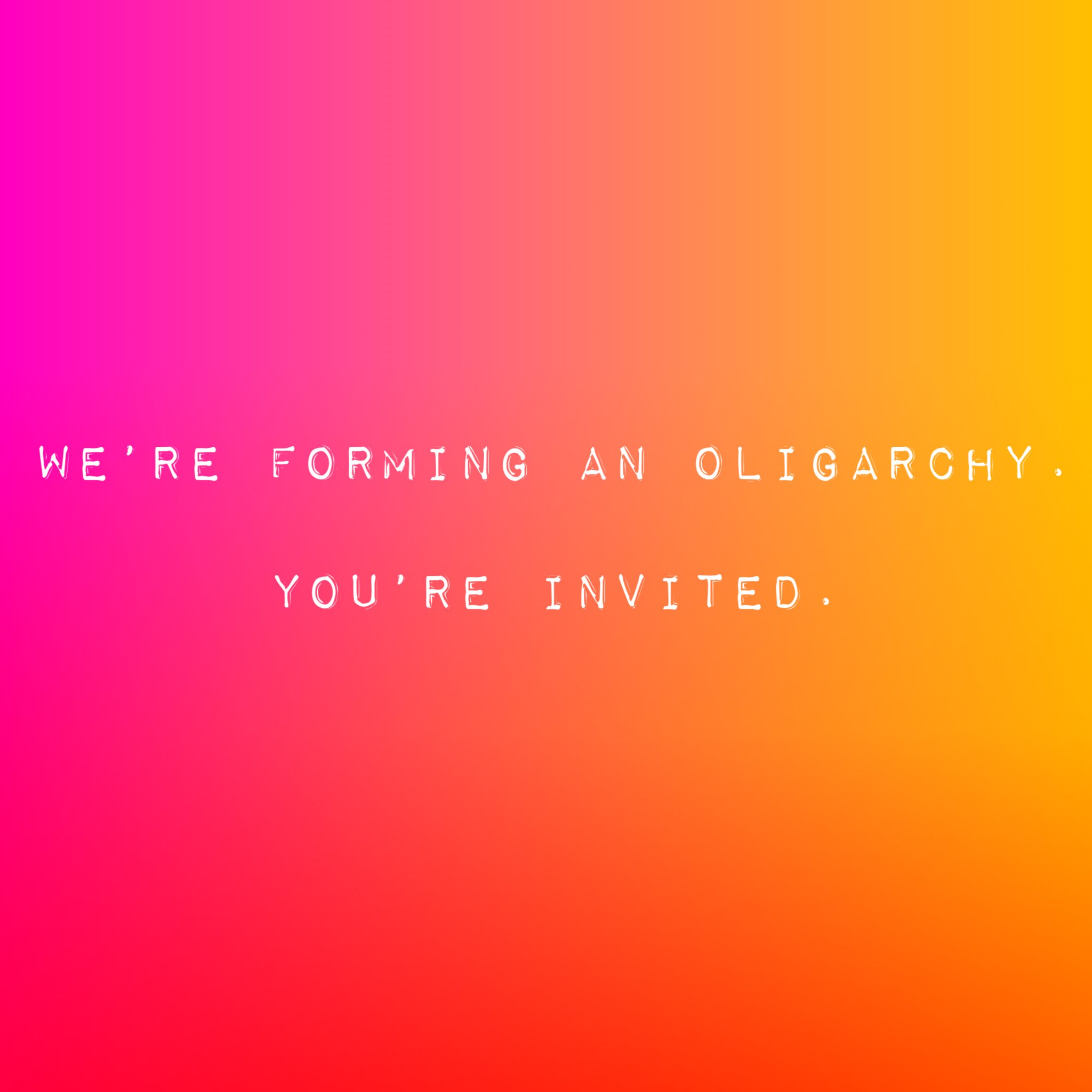 We’re forming an oligarchy. You’re invited.