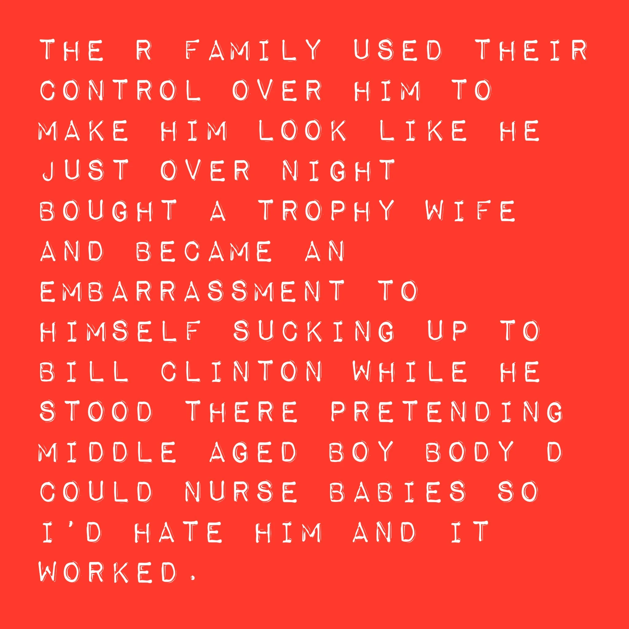 The R family have all the money in the world and they use it to do mental torture programs on us.