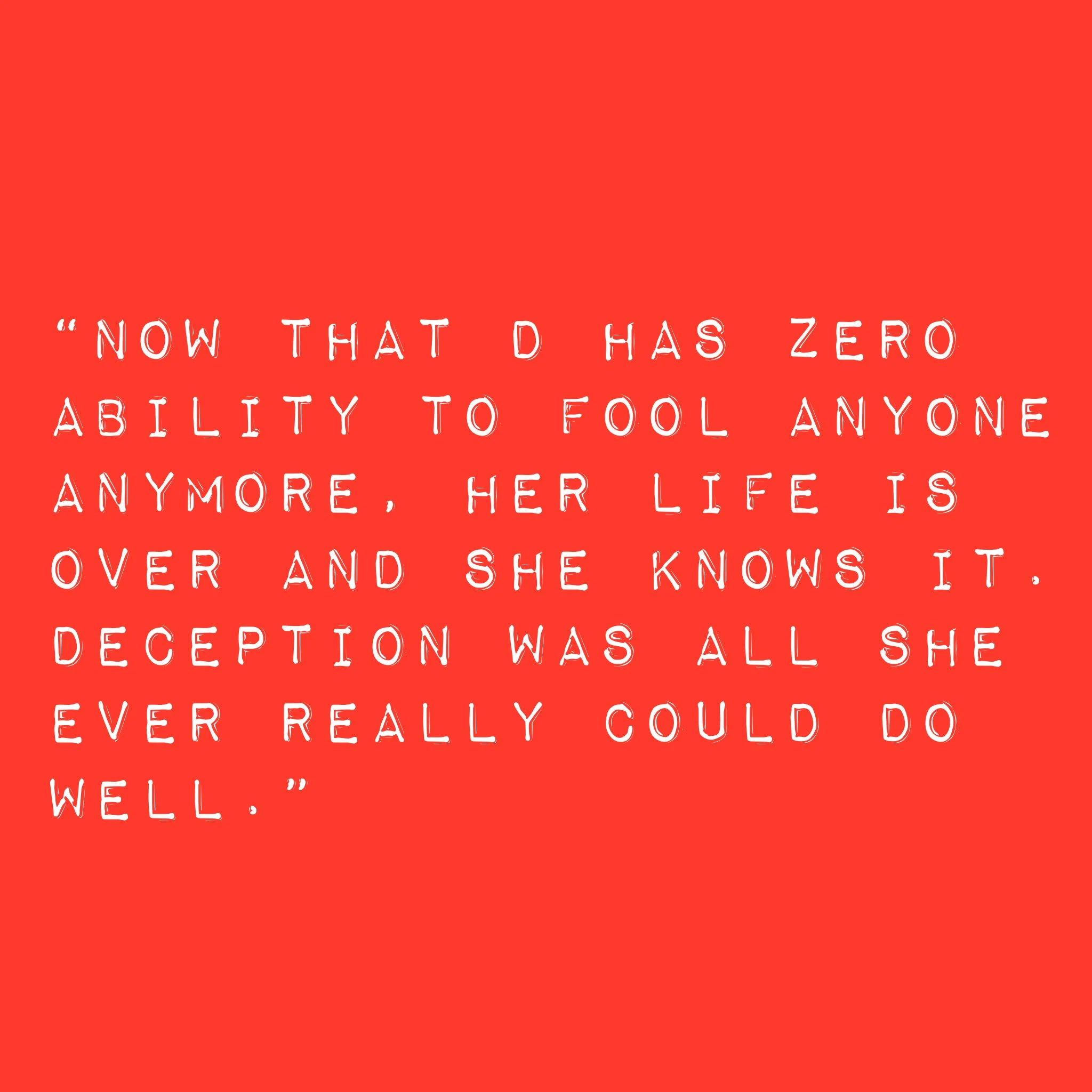 If her life has been nothing but tricking people, what was she hoping to reap from sowing so much death and misery around her? October 15, 2023