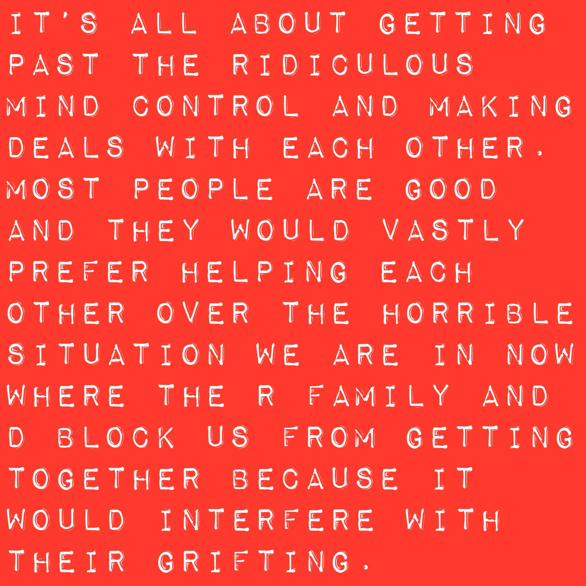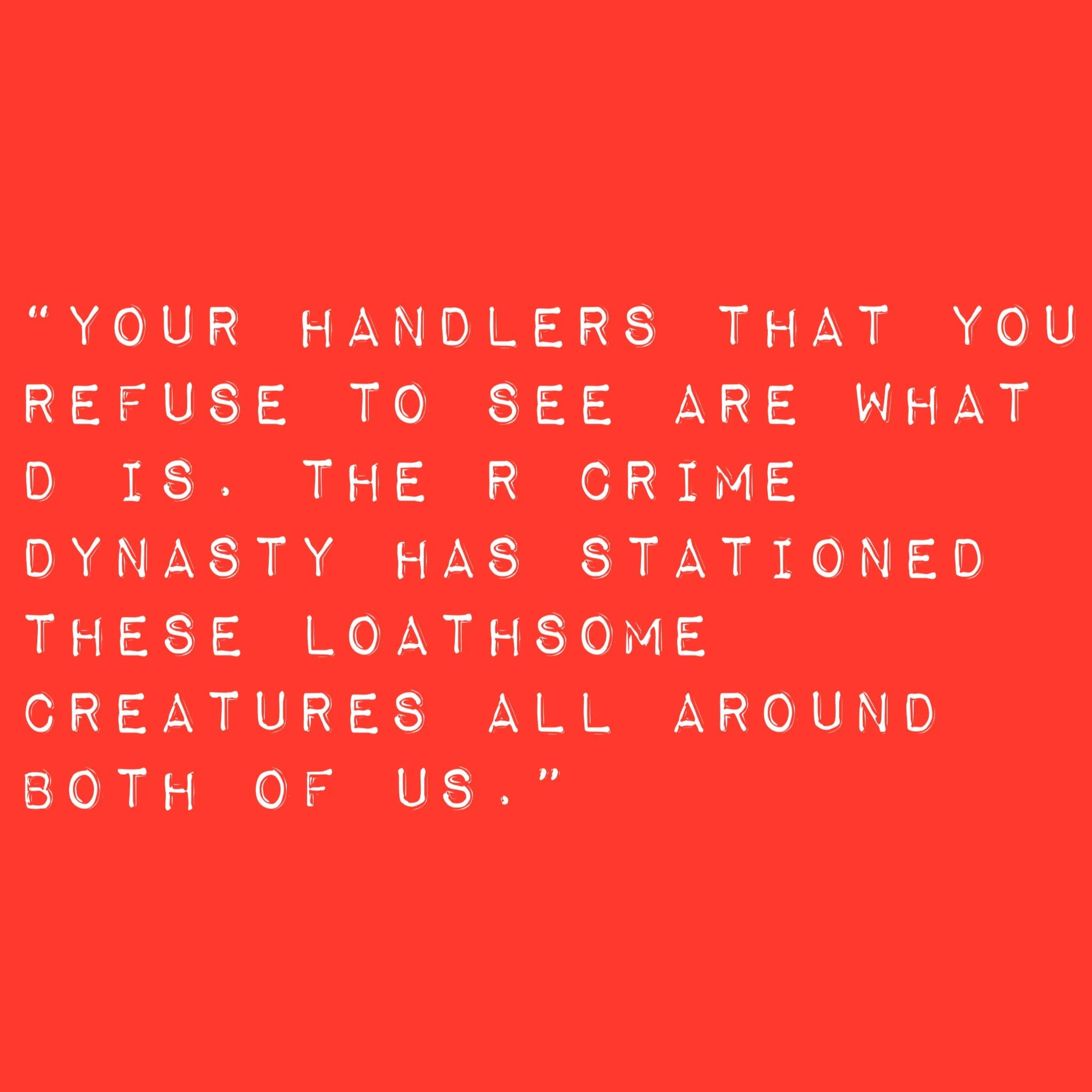 I get her mad and she pulls his strings to punish us because she has the R crime dynasty behind her sponsoring this endless torture she inflicts on us. People see through what she’s doing and then everyone easily perceives that there is a ton of fire where there is also smoke when it comes to this outrageous fraud animal handler of people who is also a heartless monster. Only gatekeepers for the R crime dynasty like D get to murder and steal from us as they please. No Justice. Just years of endless misery and prayers for deliverance from such a boundless evil that D constantly directs towards us.