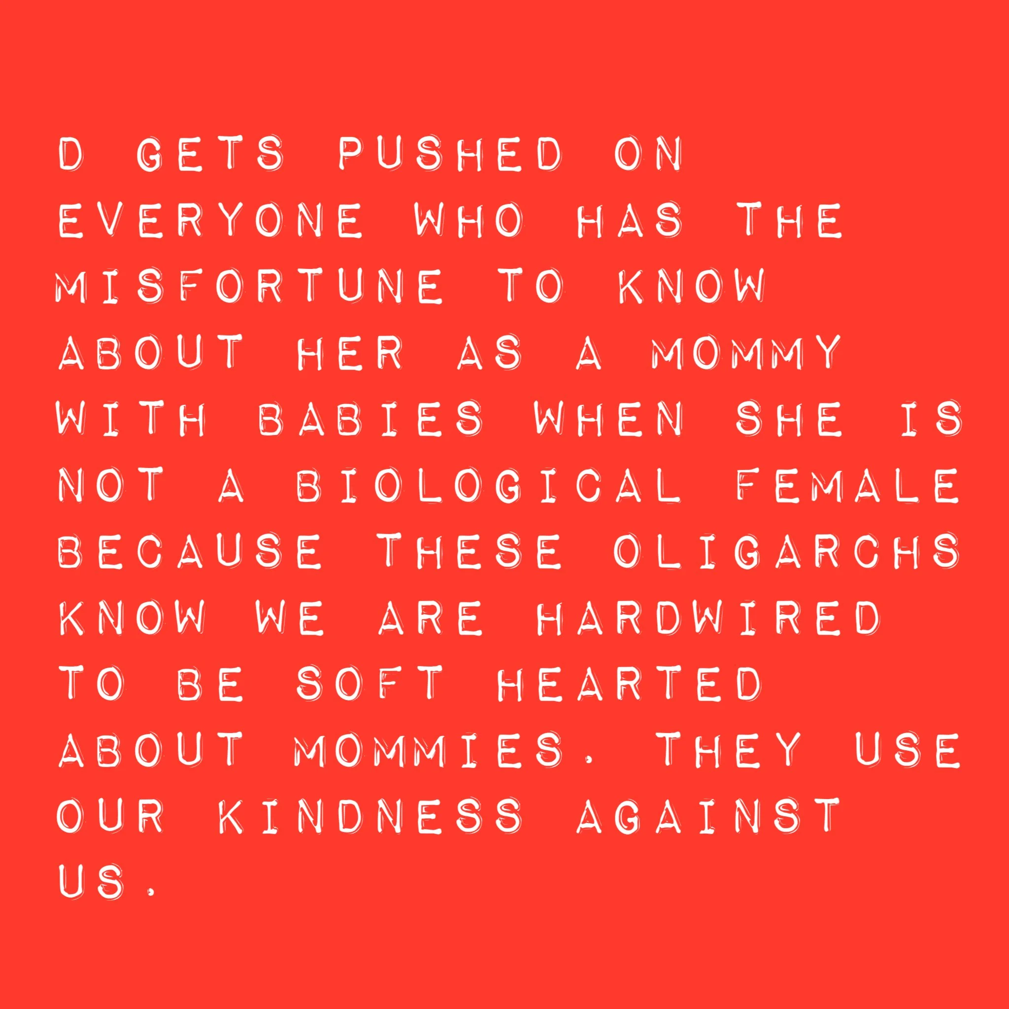Is it worth it? Taking R dynasty cash so they can keep killing us? Yes, we must eat but they will never ever let us really live. It’ll just be them on their planes going to their islands to do their ghastly rituals and us down on the ground being slowly tortured or outright murdered or suffering under some kind of house arrest.