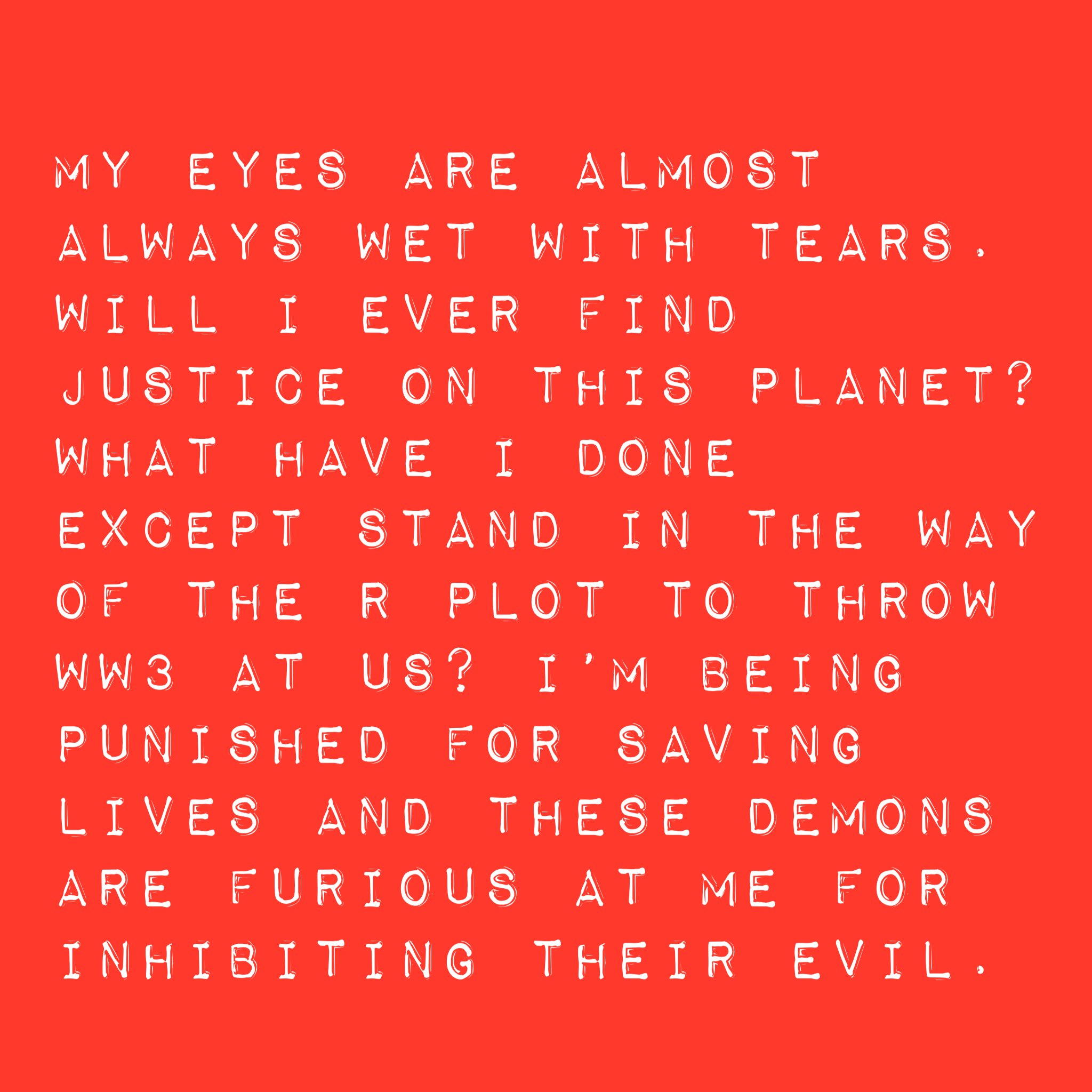 The R crime dynasty, through their control of the system, finagled my twin into spending his life throwing psychological arrows at me through the media they control while they sent numerous agents to exile me from life itself. Where is the Justice? Now he is tortured by guilt and he cannot escape the viper they assigned to guard and parasite off of him.