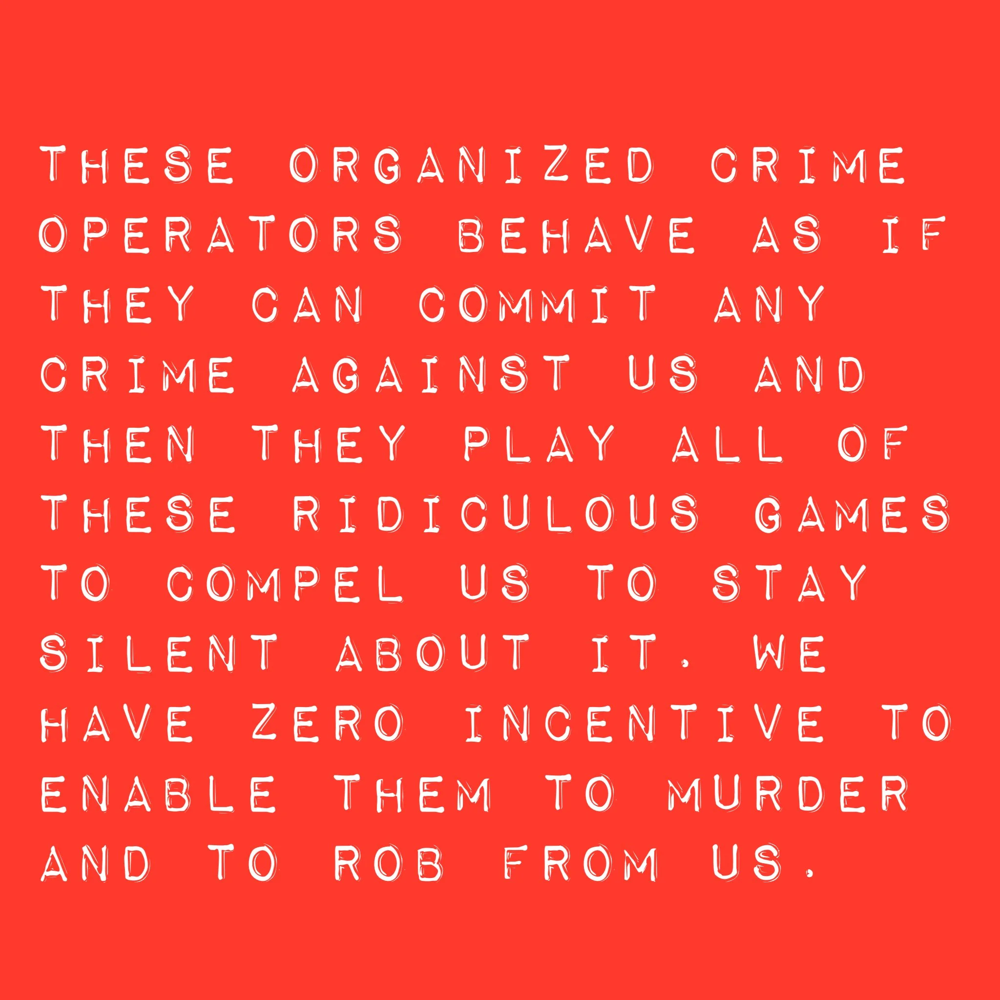 The only limits on organized crime are the ones we place on it. They will not ever reform or improve on their own. They’re the ones controlling the media to try and scapegoat anyone they can think up. The blame needs to finally land on the right parties.