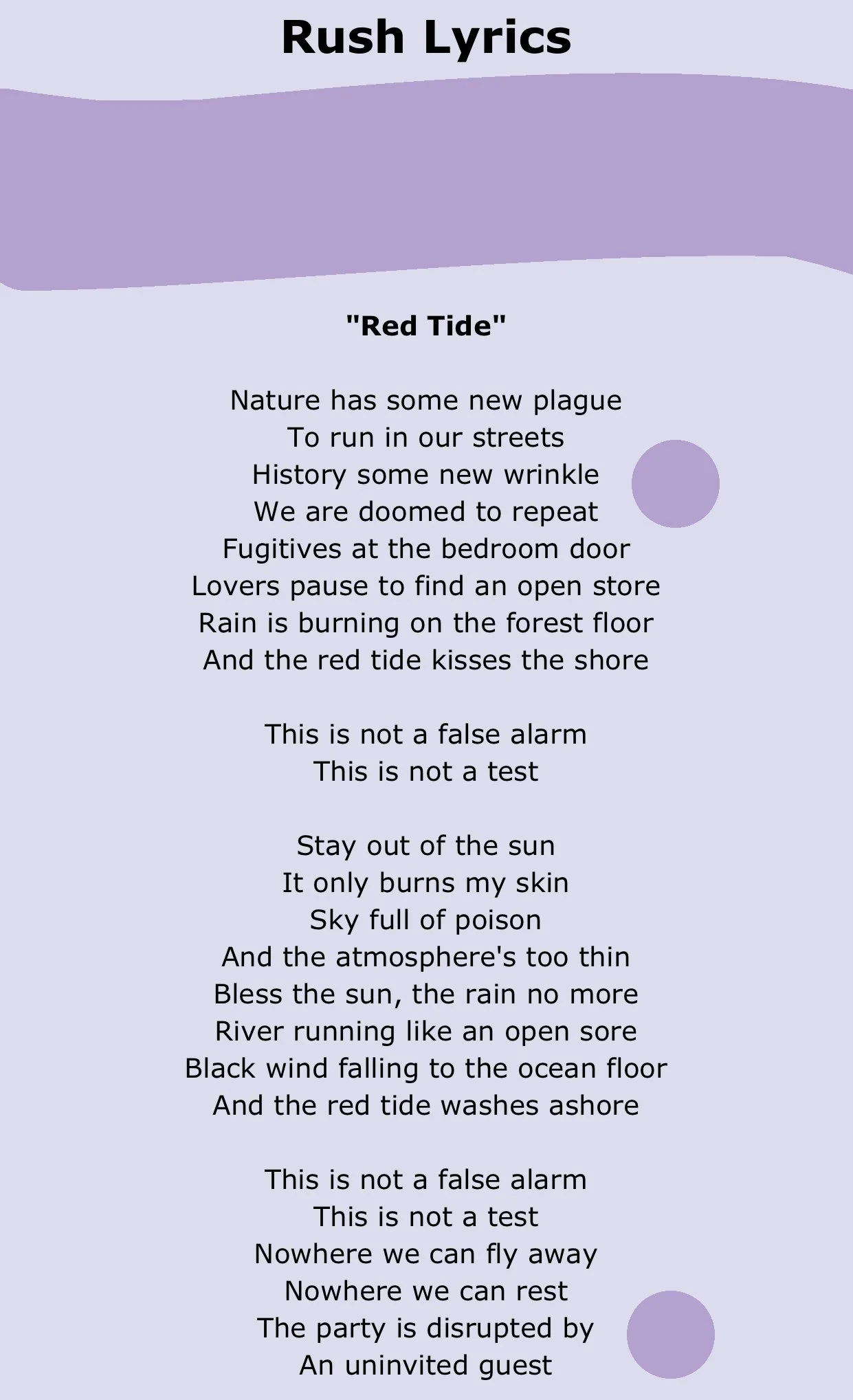 Song lyrics are full of prophecies that are coming true and we are all involved. November 17, 2023 Much can be learned from listening to Rush. Love to our Canadian friends.