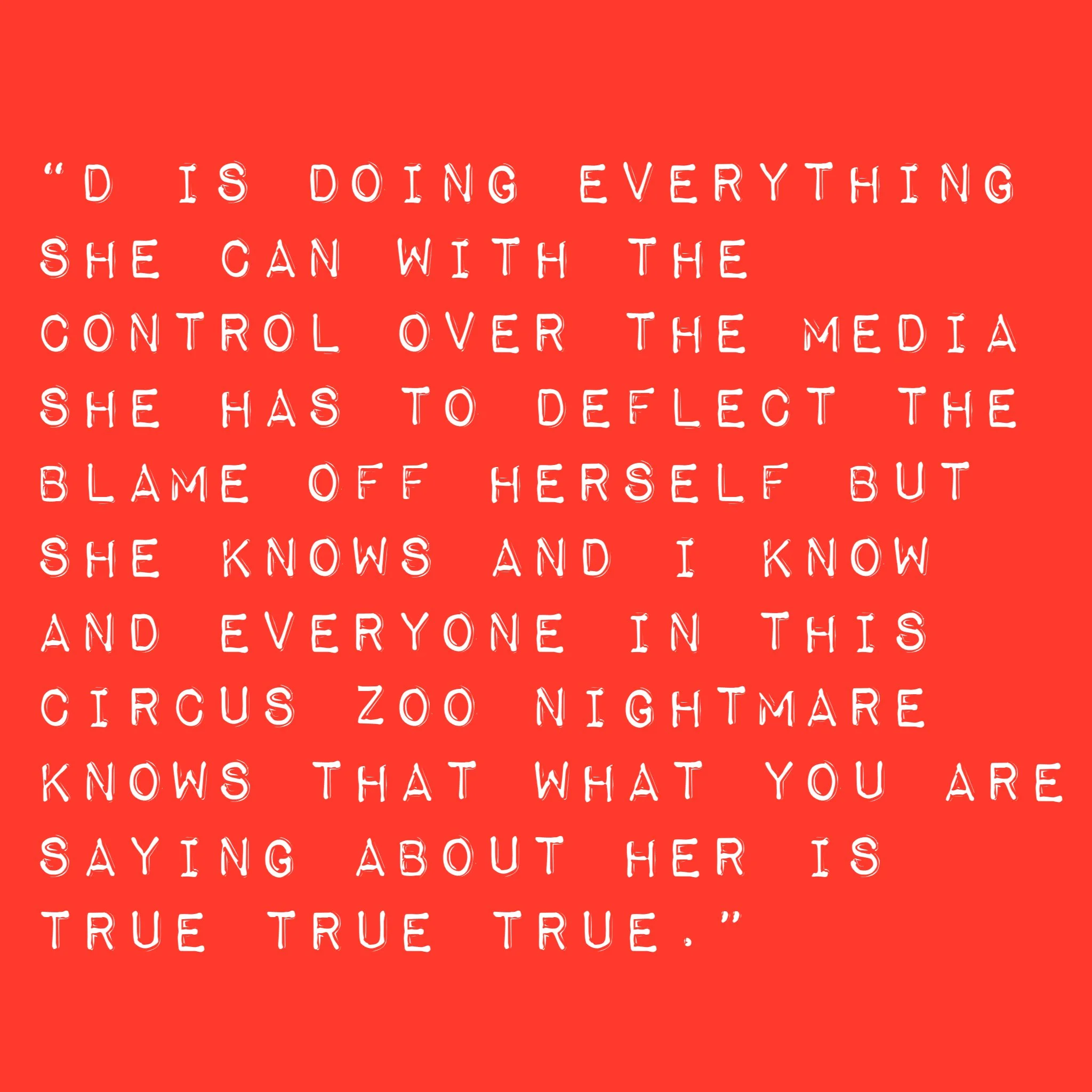 Since D has been so desperate to pretend she’s a big music star, she has been set up to take the fall for the organized crime operators who hide behind her and know it’s smarter to keep a much lower profile. What will happen is up to all of us.