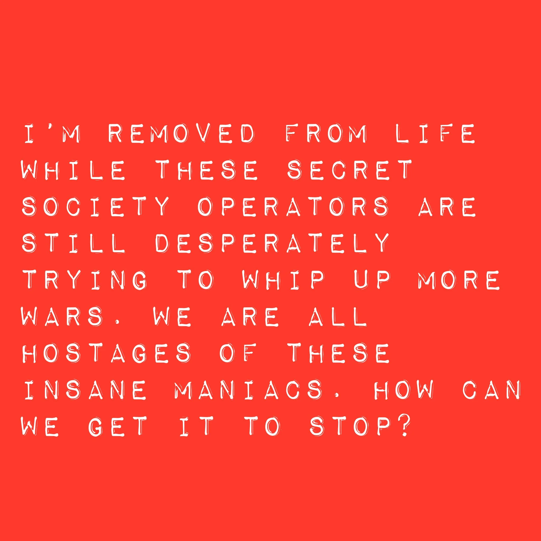 Since I won’t be tricked or bribed into helping them cause mass murder, I am a prisoner of their ability to keep me from moving forward because they control commerce/banking/money/culture/government.