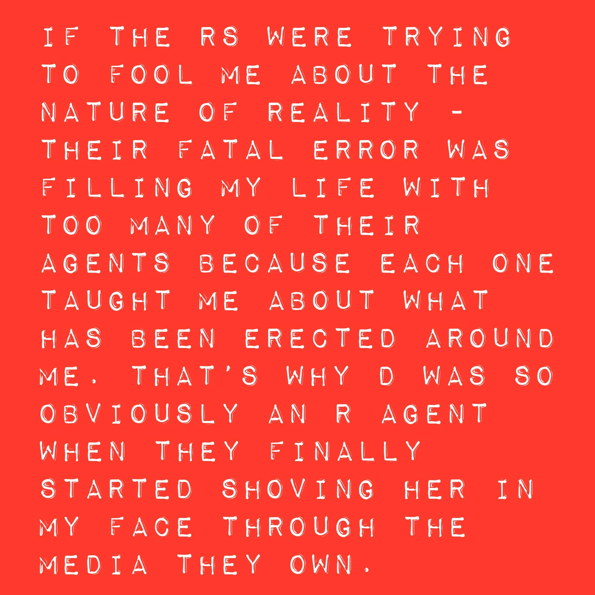 That was 100 hundred percent what was done to me by the R agents stationed around me since my youth. I have been fighting so hard to find out the truth anyway and that is the core of this project.
