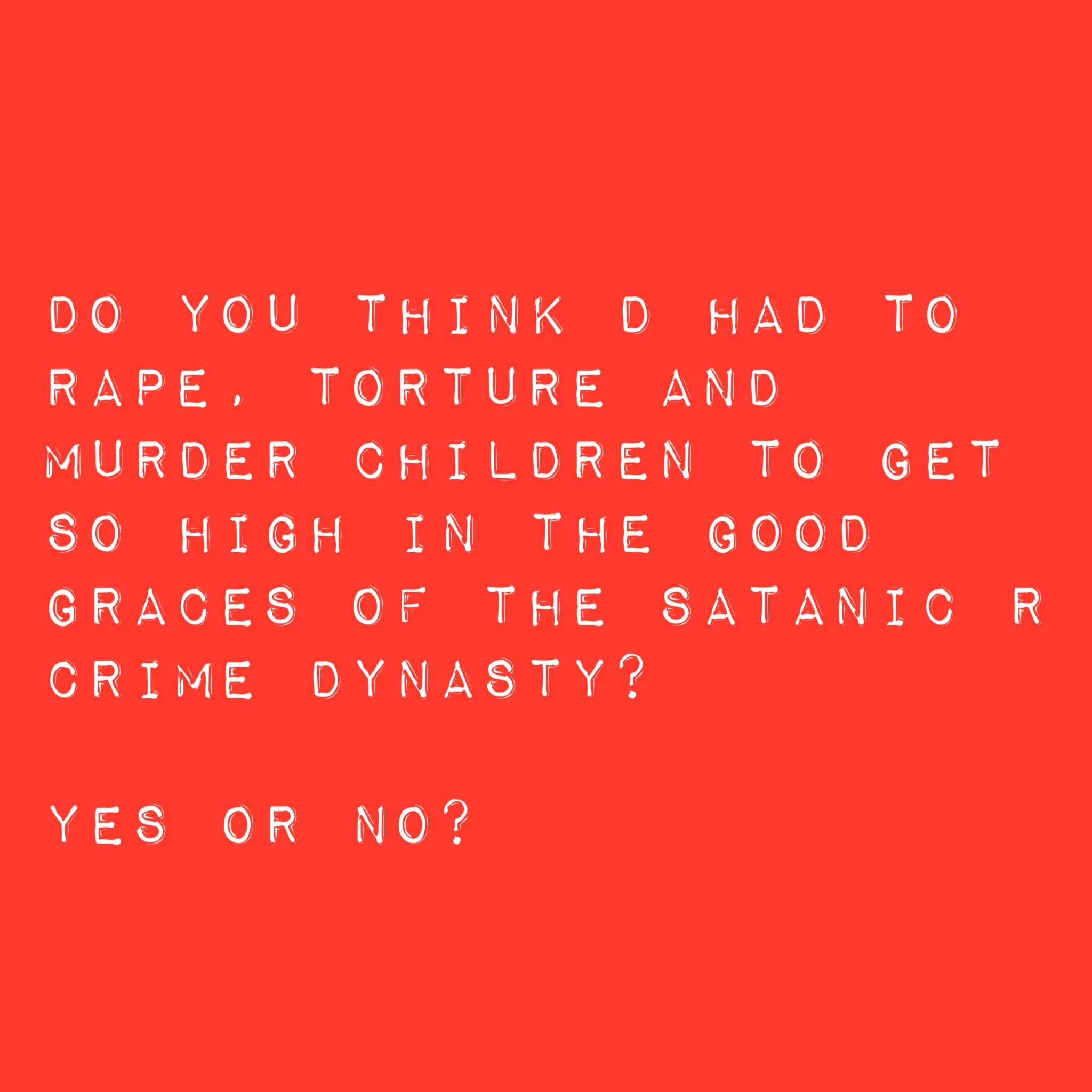 I believe it’s the craving for feeling domination over others that motivates a serial killer like D. What if we asked her about why it thrills her to murder the innocent? What if an invulnerable above the law secret society plant like D could even face REAL CONSEQUENCES for what she has been doing to intentionally destroy the lives of others?