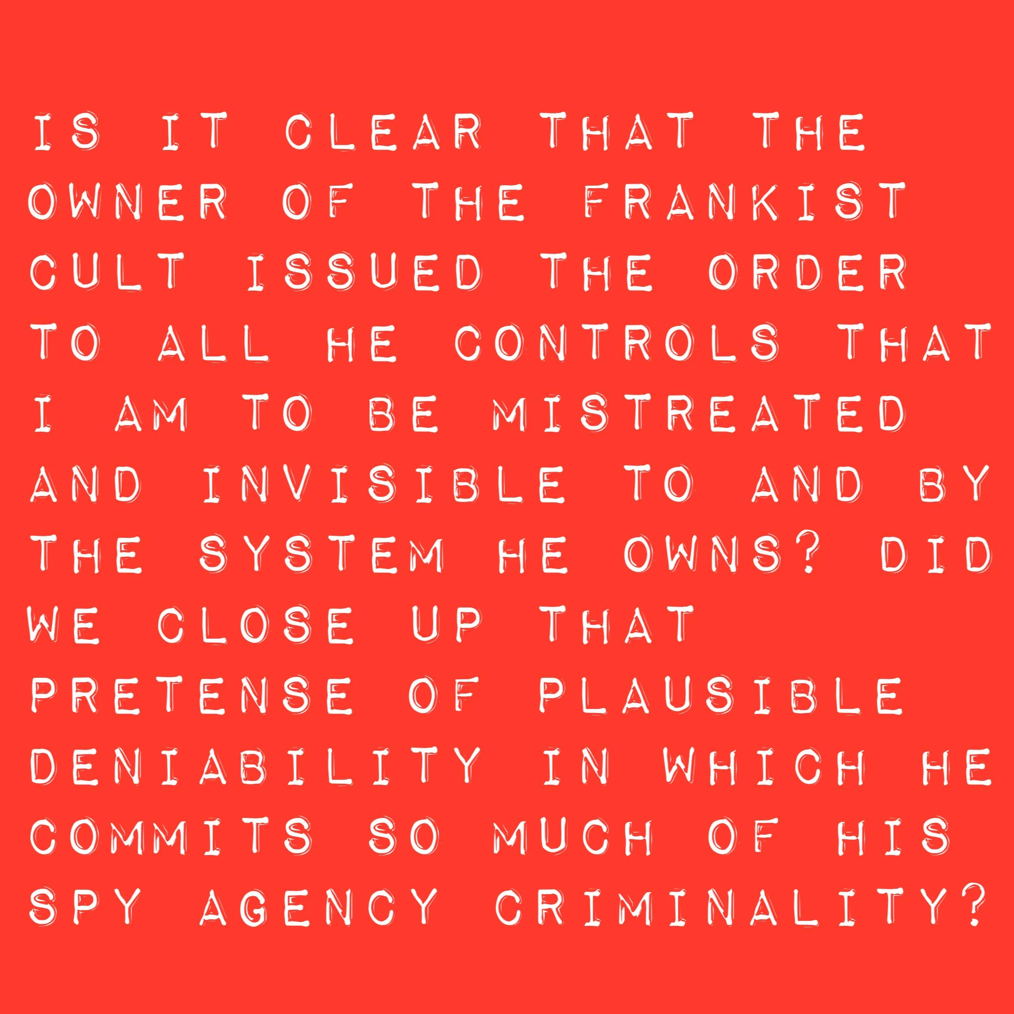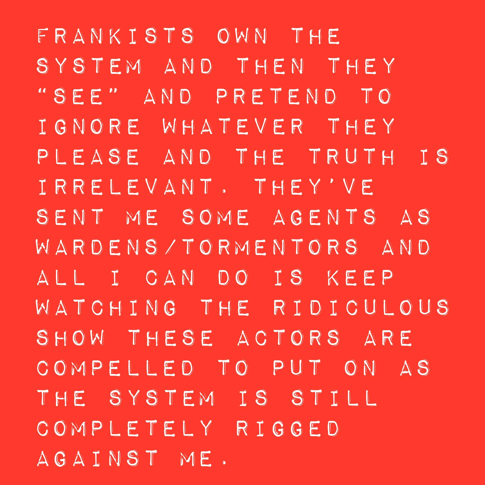 I tell the same story every single day for many years to make you CERTAIN CERTAIN CERTAIN what I am saying is true. I am corroborated wherever you look because the truth sneaks out between their incessant lying all over. I am their prisoner and if you think about it so are you until we pray and find out what it’s going to take for us to restore our dignity and the freedom to live.