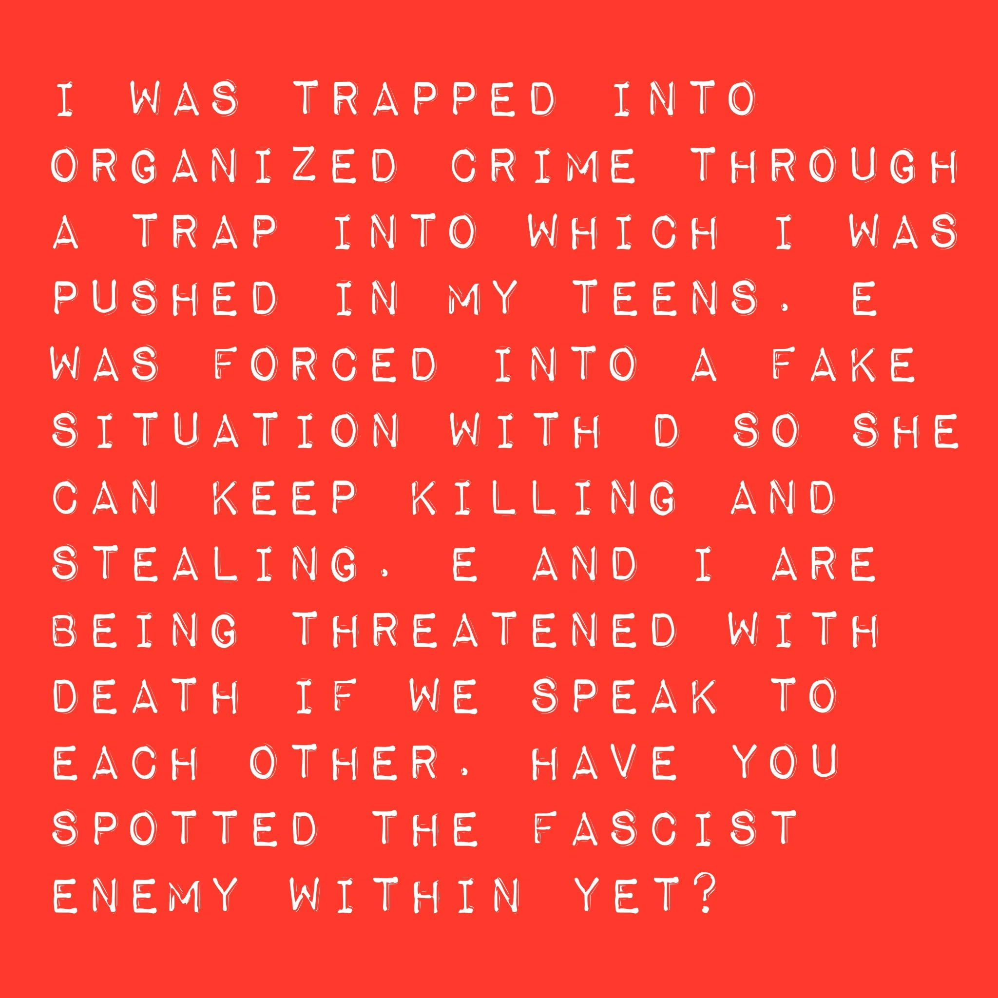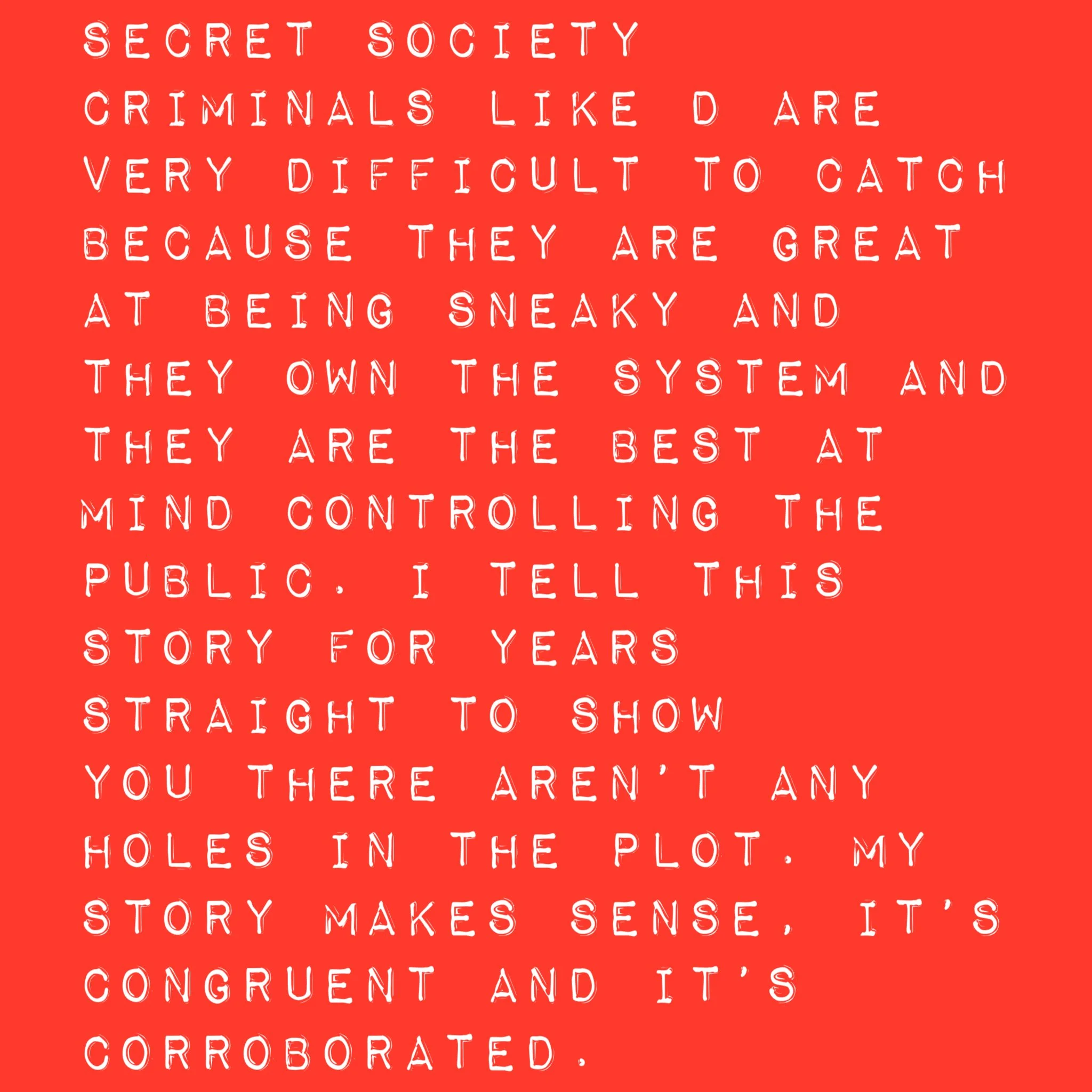E and I don’t have the basic rights of association because secret society operators like D have a murderous script they are trying to make happen. With these mobsters in control of the Justice system and commerce, they have barred me from participating in life itself. As long as they can keep stealing and murdering and locking up the innocent, we are nothing but their prisoners.