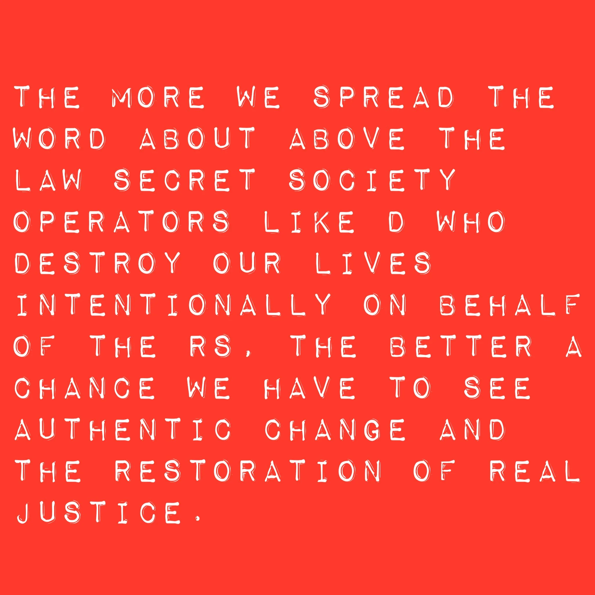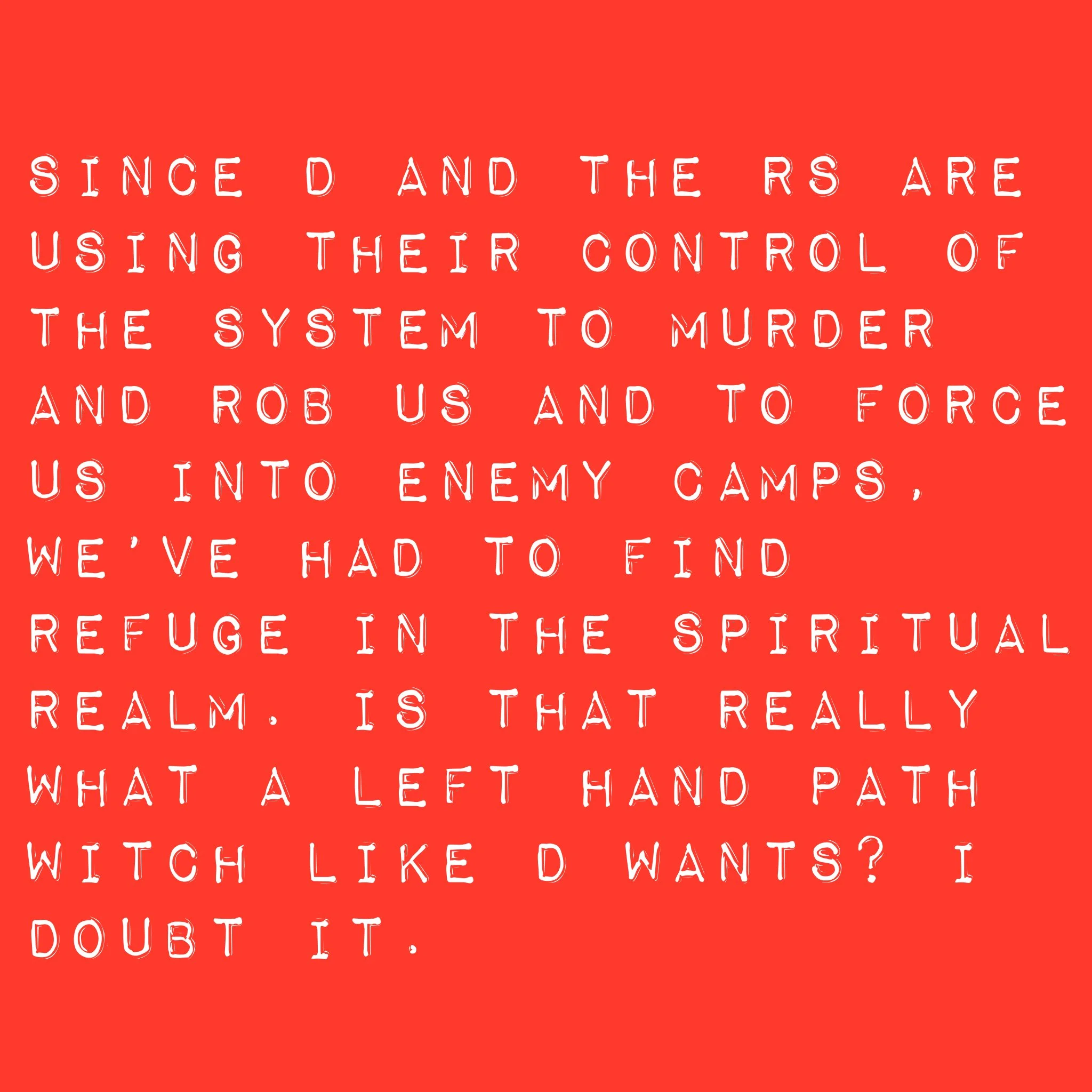 Why do the Rs get to forbid my spiritual twin from talking to me or helping me? Why did they risk their centuries old crime empire to send an outrageous fraud like D to stand between us? Why do they have the media pretending this child trafficker is a mother? Why are we letting cannibals like the Rs have all the say in making the rules when what they do is to our detriment?
