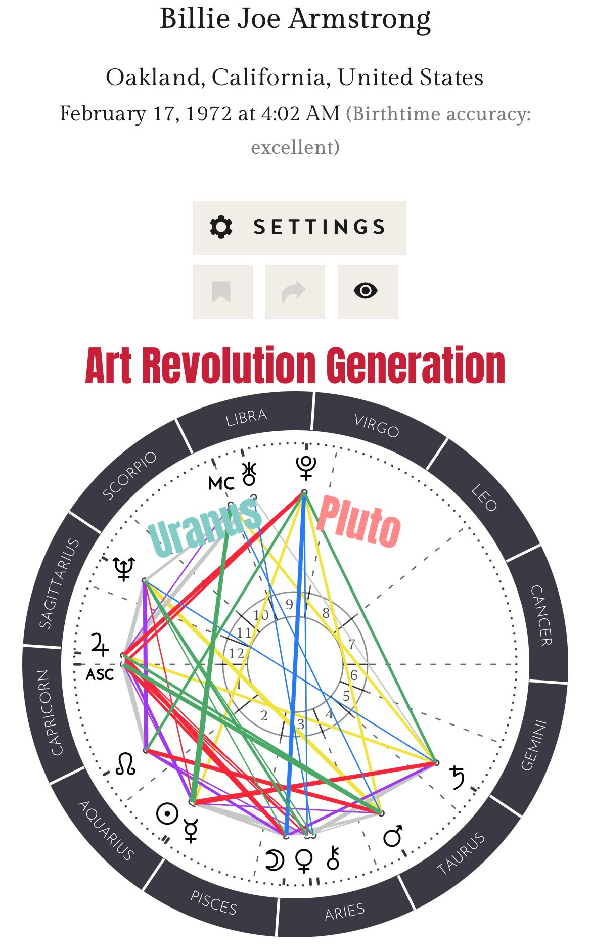 Strange things are definitely afoot. Can anyone figure out what’s going on? People around my age - that includes Billie Joe Armstrong - are destined to be art revolutionaries because we have Uranus and Pluto in Libra.
