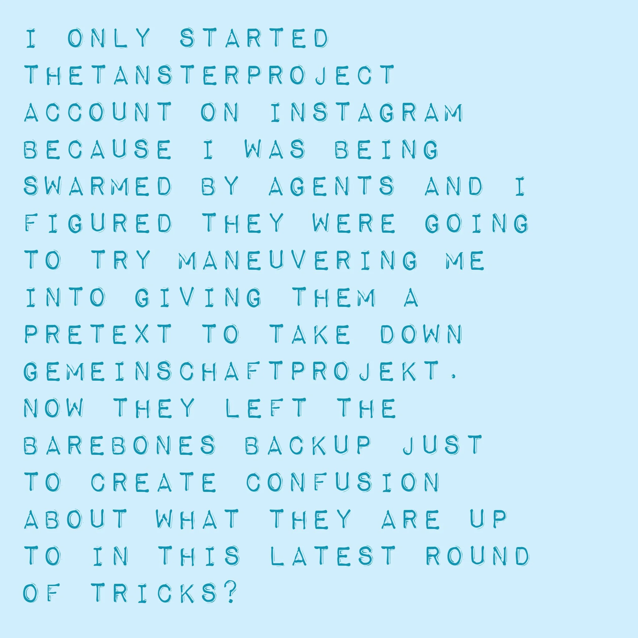 I was avoiding instagram mostly because I knew they wanted a pretext to remove the record of my project at gemeinschaftprojekt. I was not there so they could not come up with a pretext. If they took it down because they are a front for my persecutors - the R family - then Facebook is engaged in fraud and dishonest business practices. That’s a big stock on that trumped up stock market engaged in massive amounts of psychological torture against the public. Their very purpose for existence is clearly a lie and it’s just more psychological warfare and subversion straight from that slaver family based in England who gets away with every predatory thing they choose to do against us because we let them own the central banks and therefore practically everything else.