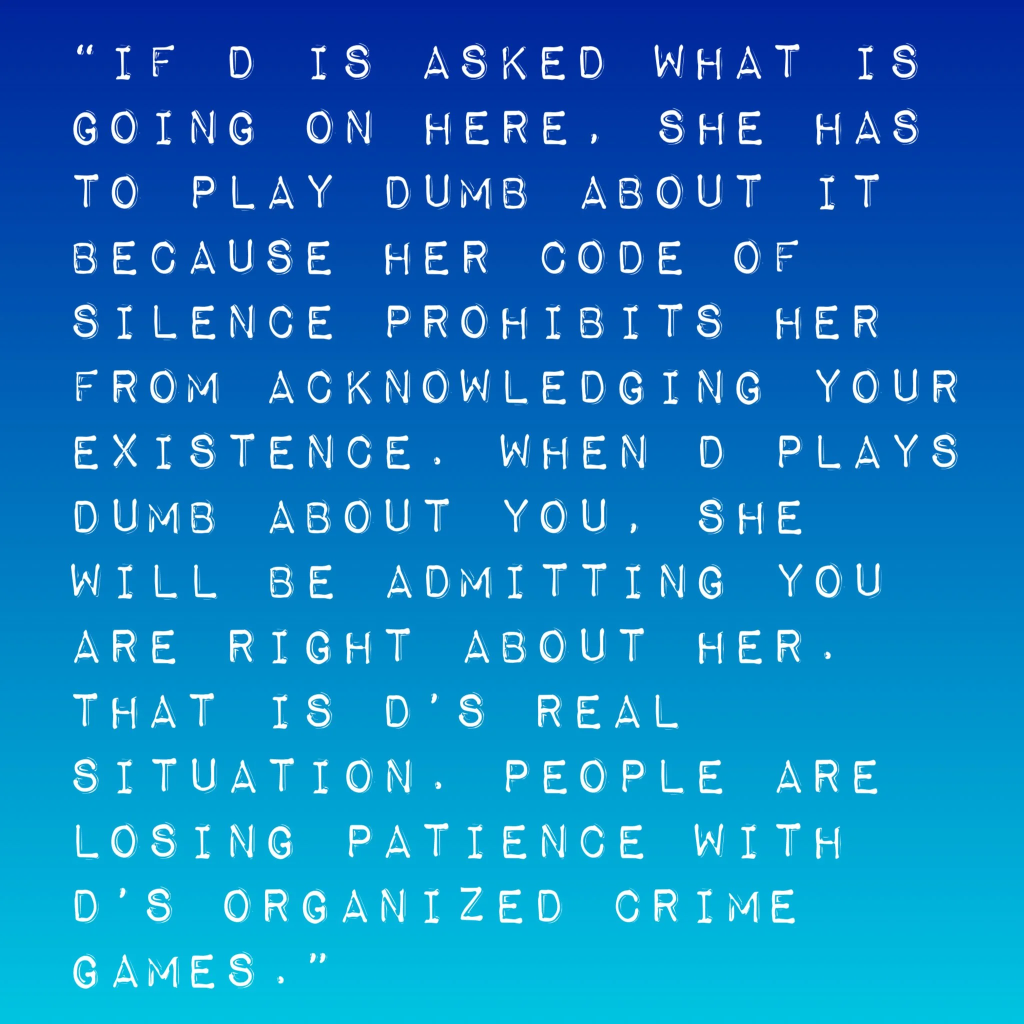 ← D needs to remind herself of exactly how the R family treated all of the other agents just like her after they failed in my regard.