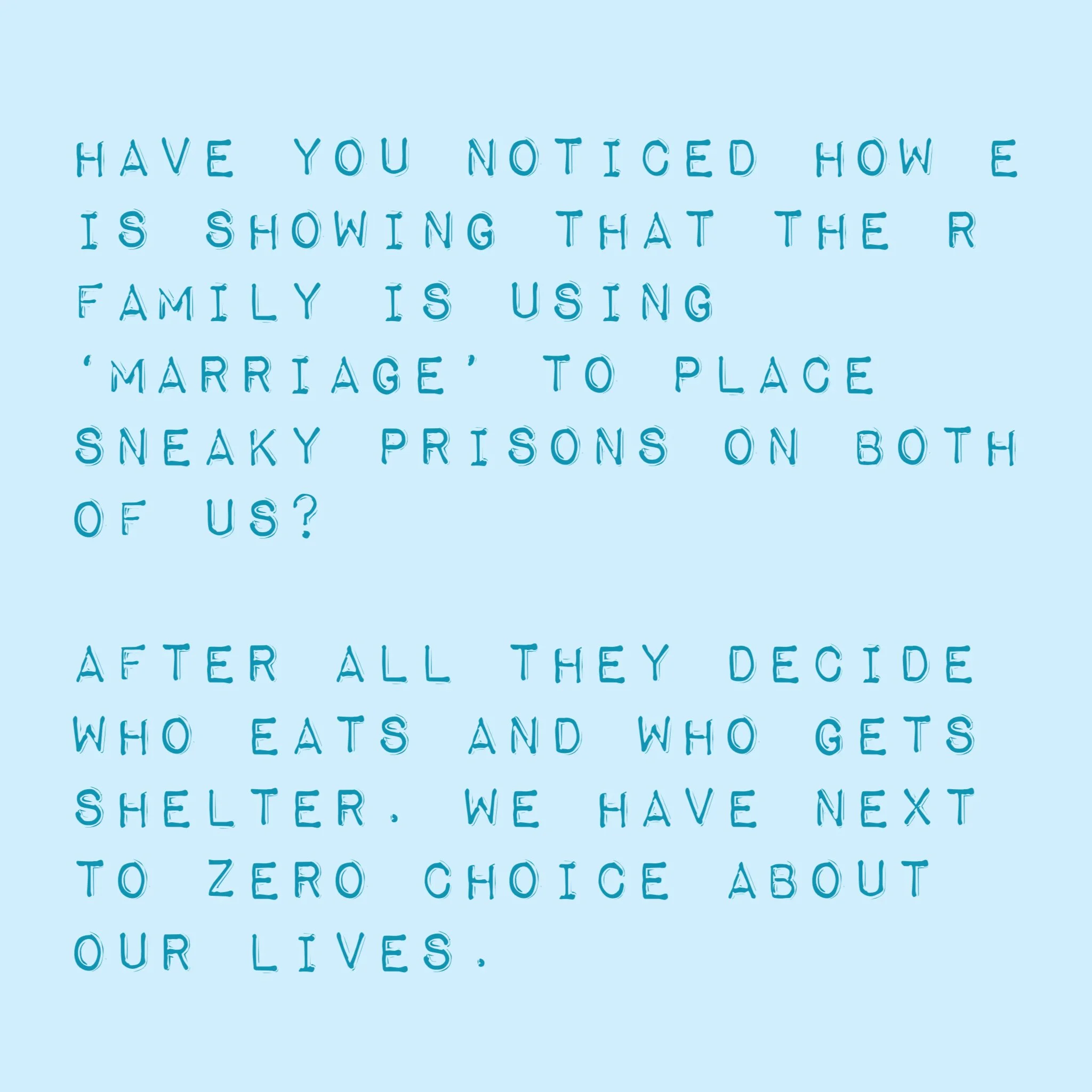 D is running a trauma based mind control program on both of us and the relationship we are having with her is non consensual. I am spiritually tethered to E. What she does to him really has an impact on me!