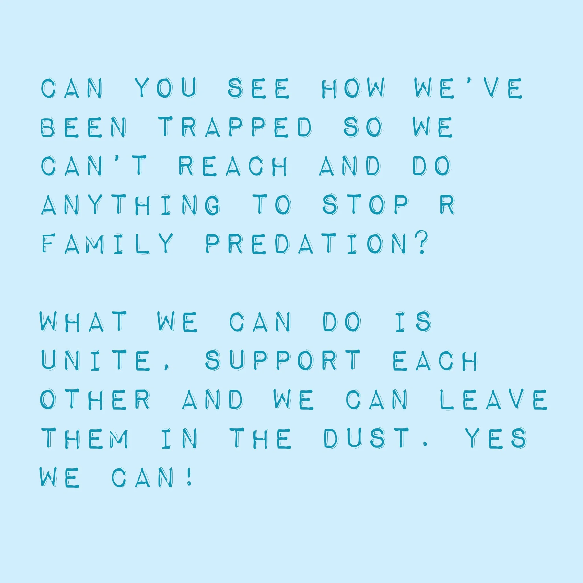 I tried and tried to make it on my own but the game was rigged against me because the R family has it in for me and they control almost everything and they put a bounty on me and send people to intimidate me and they have forbidden people to acknowledge or help me! None of us have any real chances or rights as long as the slaver R family not so secretly controls the world.