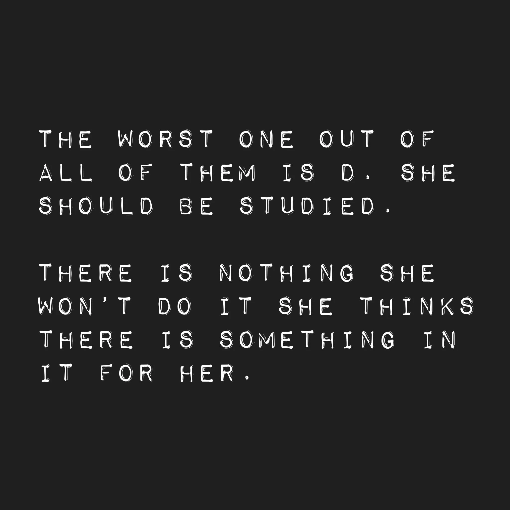 We have both been tortured by her. She pulls our strings emotionally and financially because she has those monsters helping her every step of the way. Can you see how much of insane recent history is literally D torturing the 2 of us?