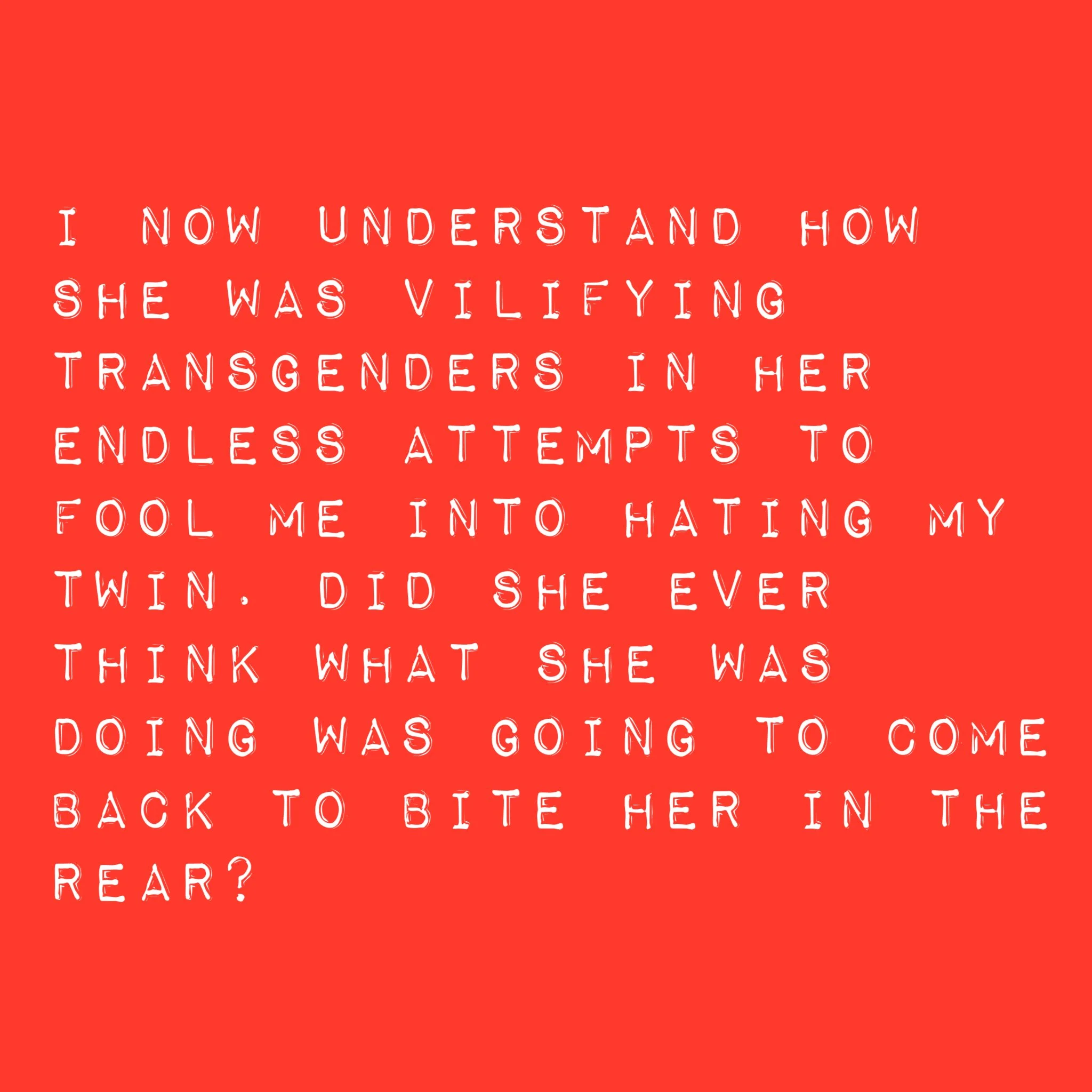 Watch them continue to try and fool us to get us fighting. It’s how they run this world and I’m hoping we will change our minds about what we are willing to tolerate. See how good you get at spotting D’s work as a puppeteer. Once you get her low down loving to kick up jealousy style, you’ll catch it. The World War 3 train she has been pushing is way off the tracks but clearly she’ll be throwing her tricks to the very end. If she knew about love, she’d know she has been messing with the wrong 2 people. If there ever were a human in there, it must have vacated the premises long before she showed up in the 90s to install a spy station between us.