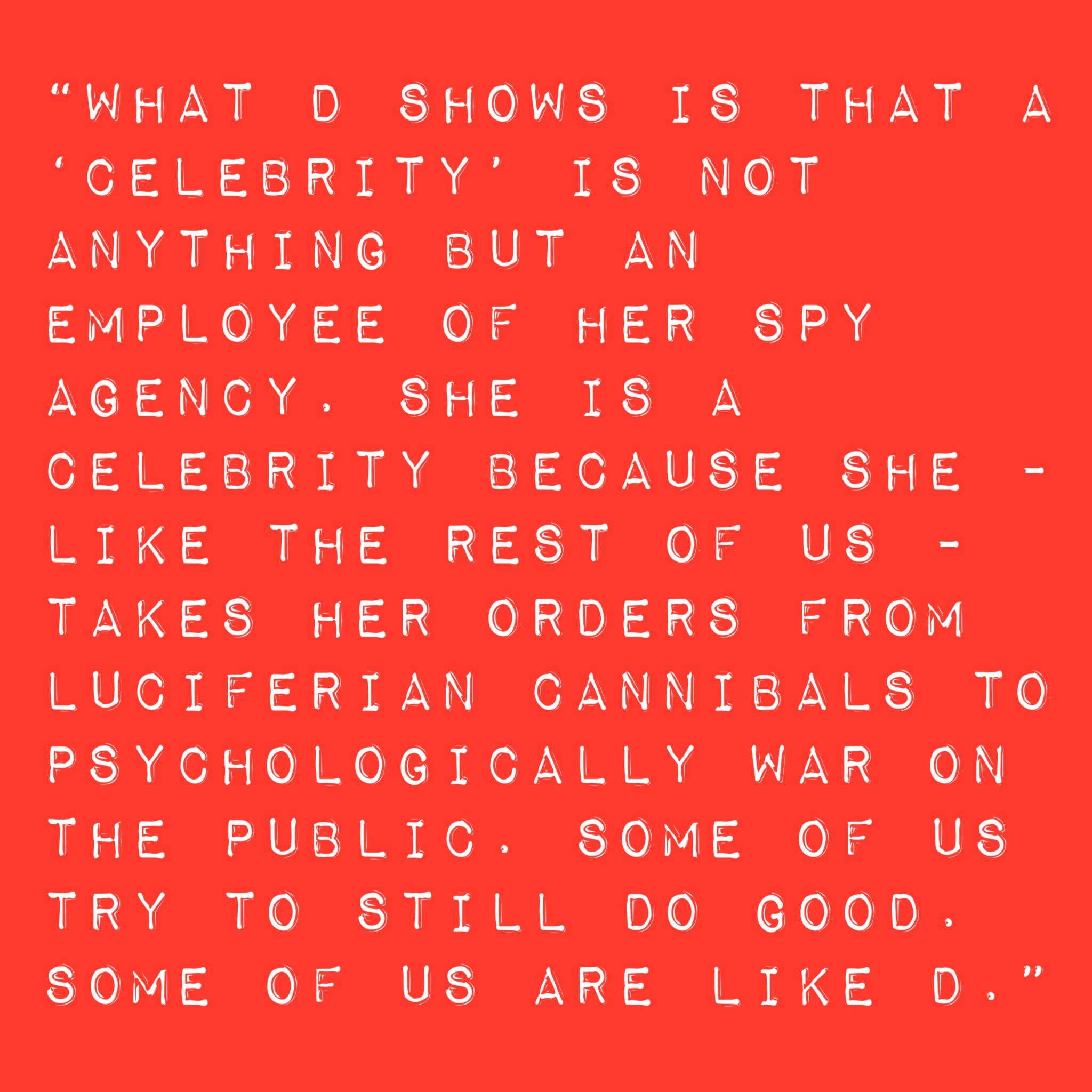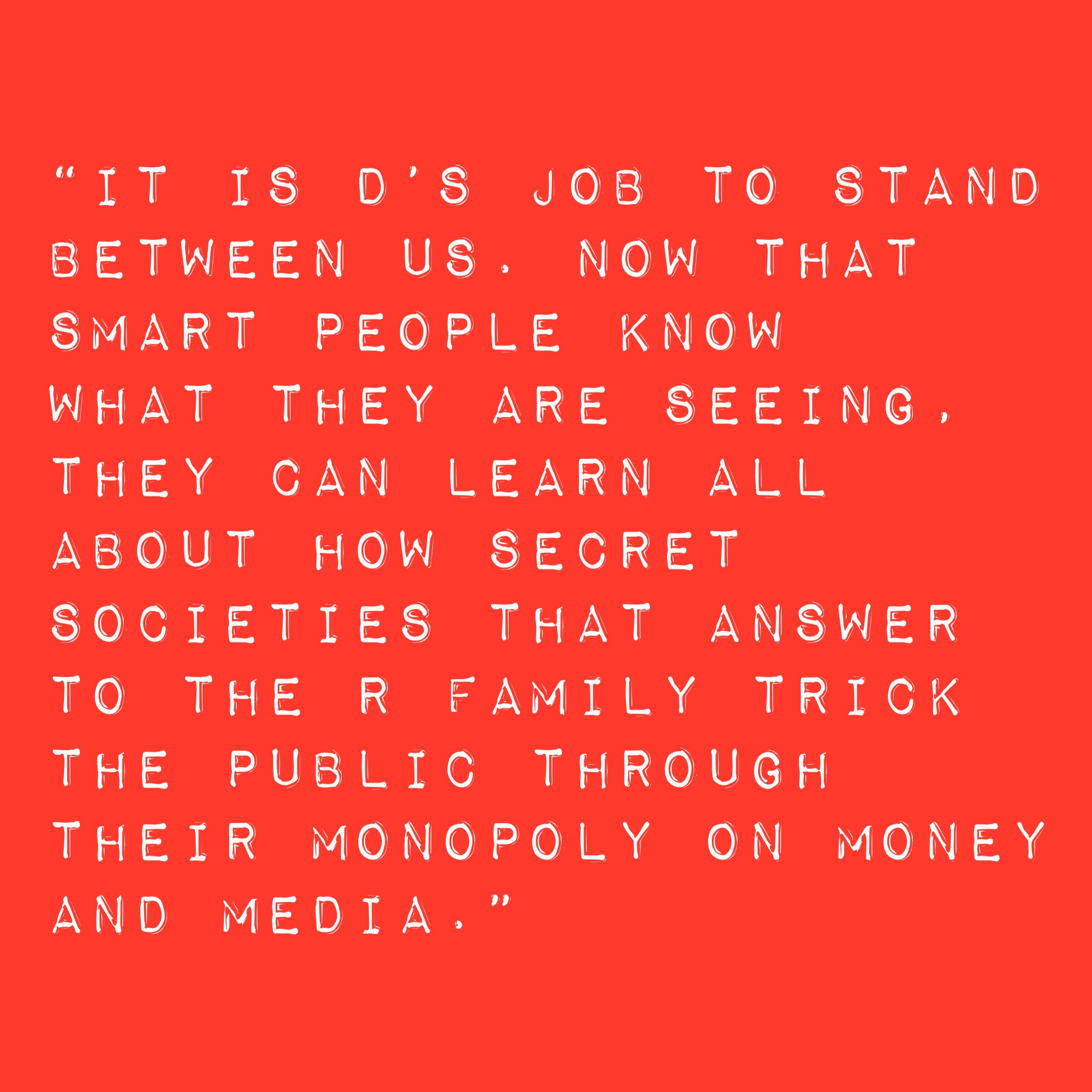 Since I refused to become a little Hitler for D’s spy agency, I’ve been exiled and banned from participation in a totally manipulated “culture”. The ones who tried to shoehorn me into that role are creating a murderous script that they have the money and influence to force on everyone through the banking monopoly of the R family.