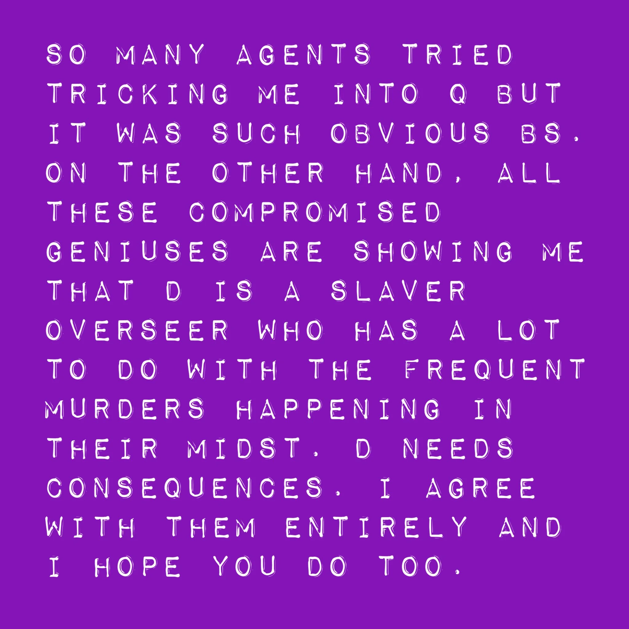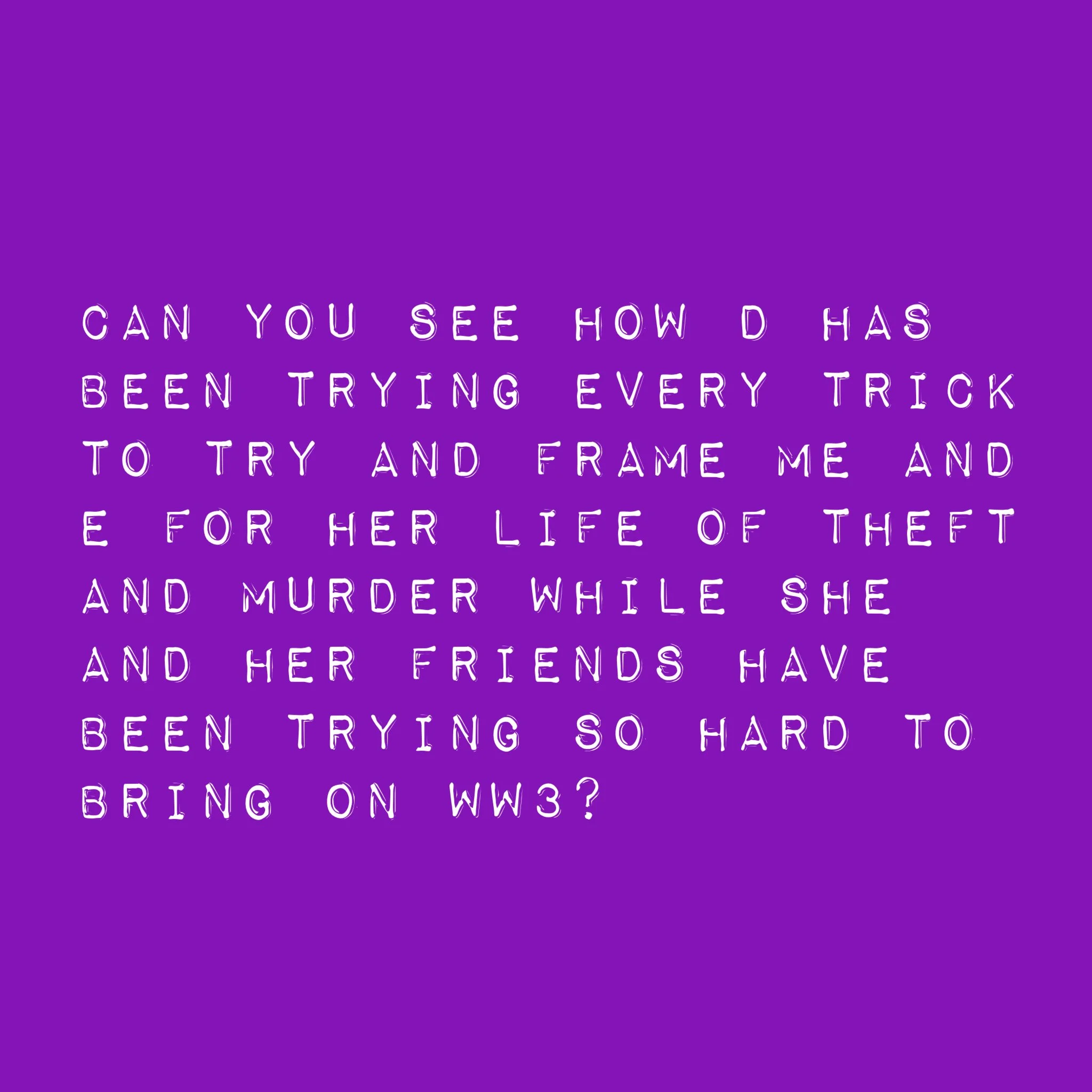 A grifter like D simply must find people to frame to keep her parasitic life of crime going. She has a network of the likeminded to help her get what she wants at our expense.