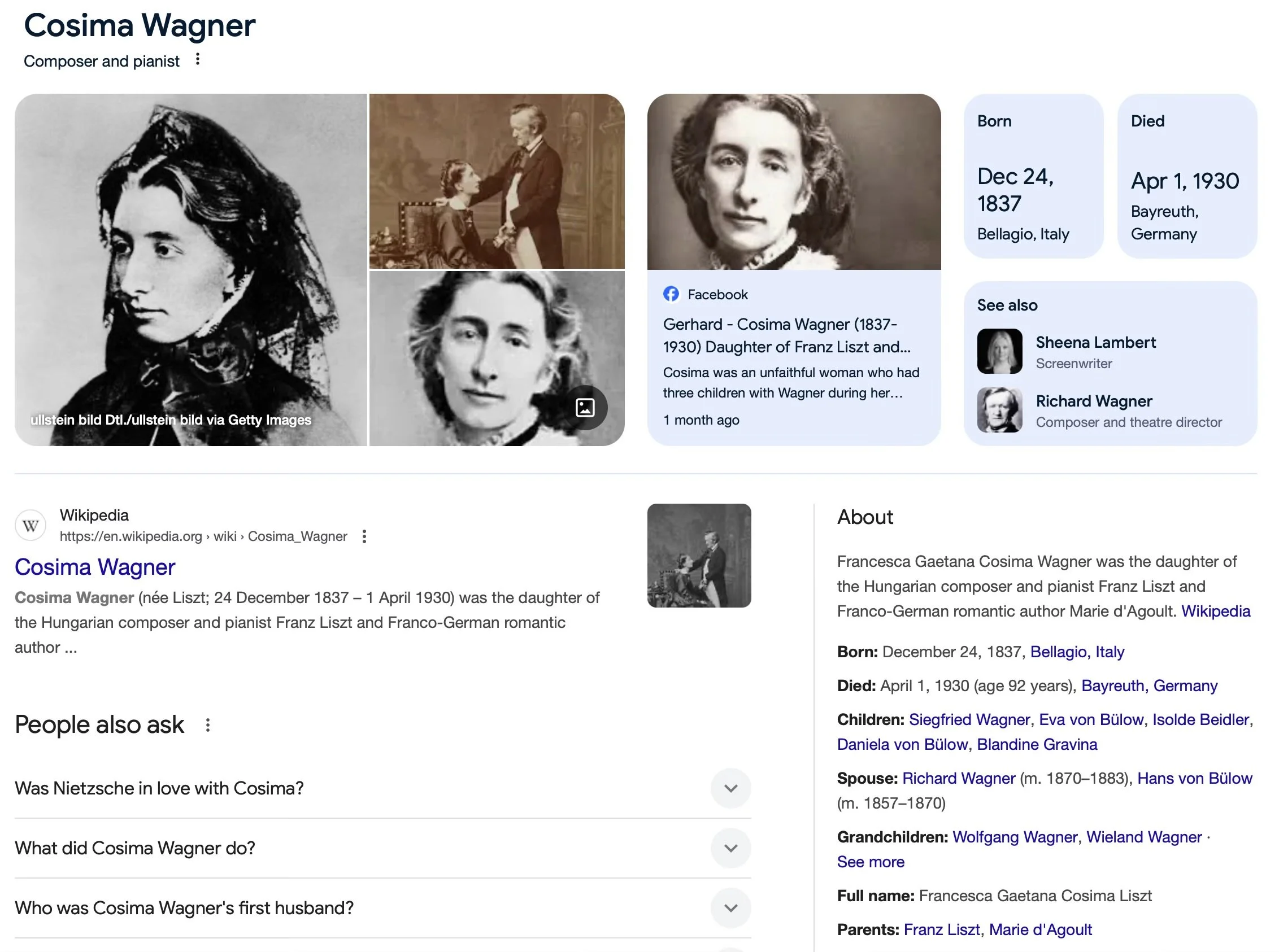Cosima is very known in the music world because she was Franz Liszt’s daughter and Richard Wagner’s much younger wife. She worked her entire life setting this up. She knew they were going to suppress Richard’s work exactly in the manner which they have done. She supported him similarly to how I support Elvis and we are all connected. Tanster is realizing the amount of truth contained in Richard’s work. It is her job to set the example and change minds about what we need to do to reclaim our lives and our planet in accordance with God’s will.