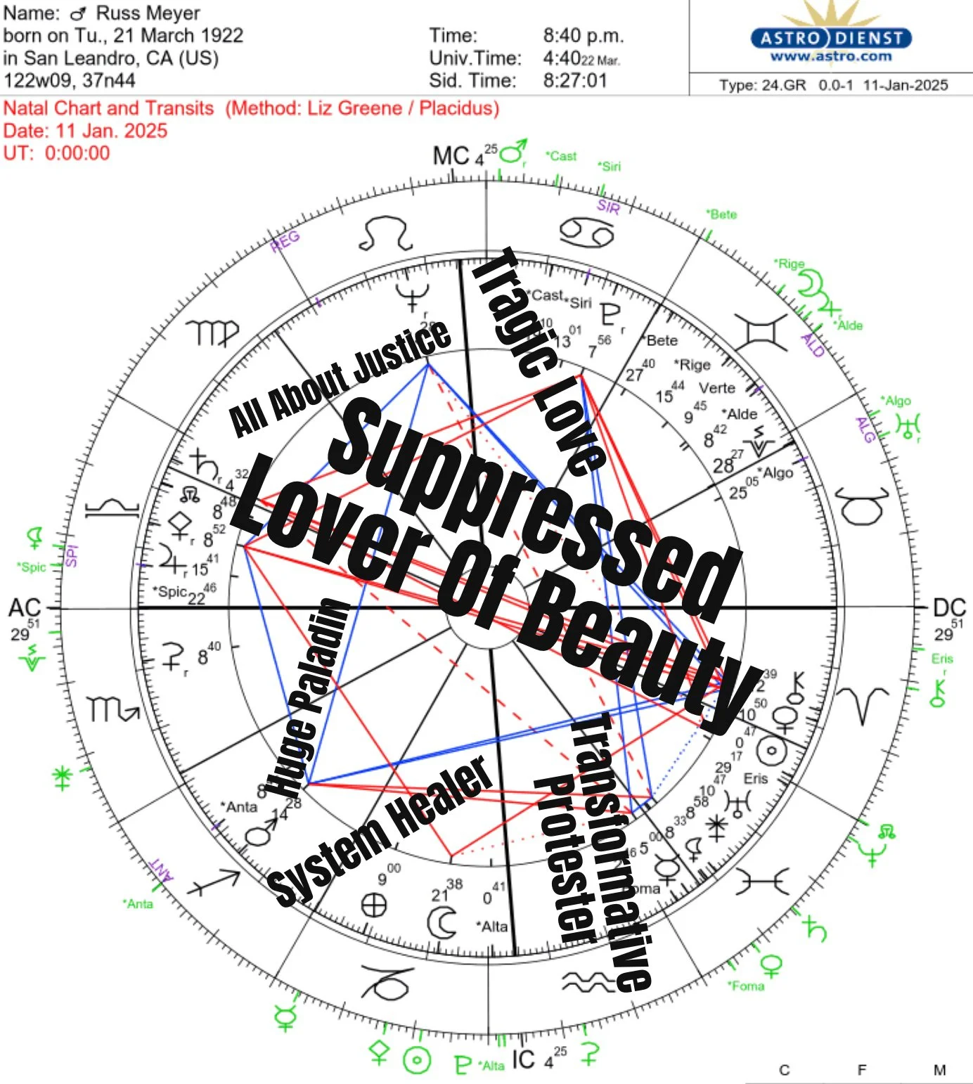 I must highlight how very strange and coincidental it is that I did Dwayne Johnson’s chart a few hours ago and he was born in San Leandro, California and the same can be said about Russ. A lot of California people come through for this. The San Leandro connection is a spooky 1.
