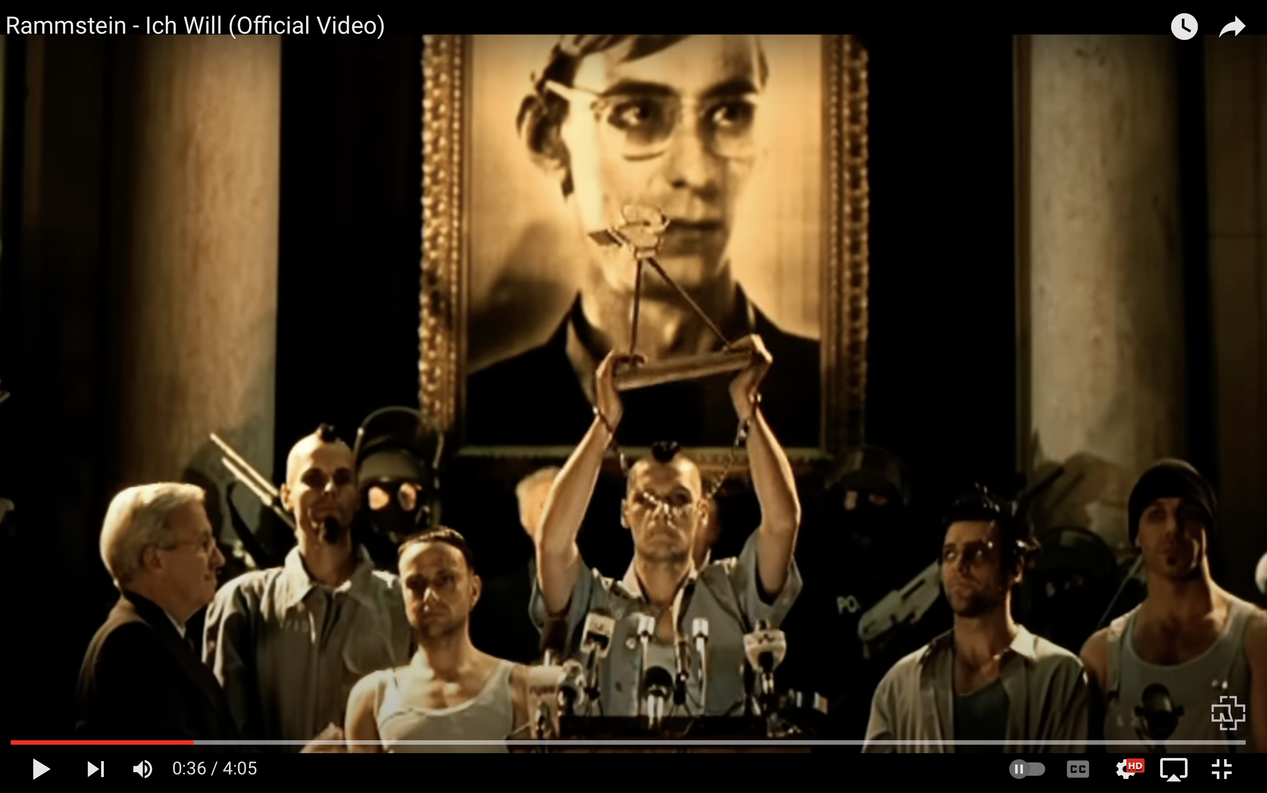 In Rammstein’s completely excellent tanz metal video for “Ich Will,” the guys pose in front of a giant poster of Flake. An objective viewer will notice the similarities between that scene and one from low level claymation masterpiece, “Redman The Fascist.” In fact, the shot of the titular Redman orating at the podium in front of the giant poster of himself is the thumb for the video.