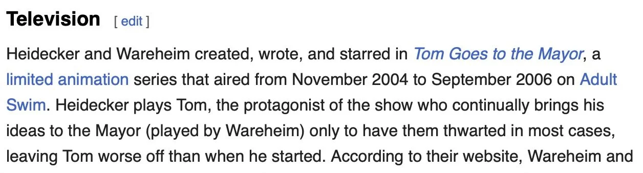 Now Tim Heidecker wants his - July 11, 2024 A lot of Wikipedia is full of code about the story playing out on this blog. The passage below kind of sticks out on Tim’s page. It describes the scenario that went on for decades between me and the person I now call my “main mafia warden”.