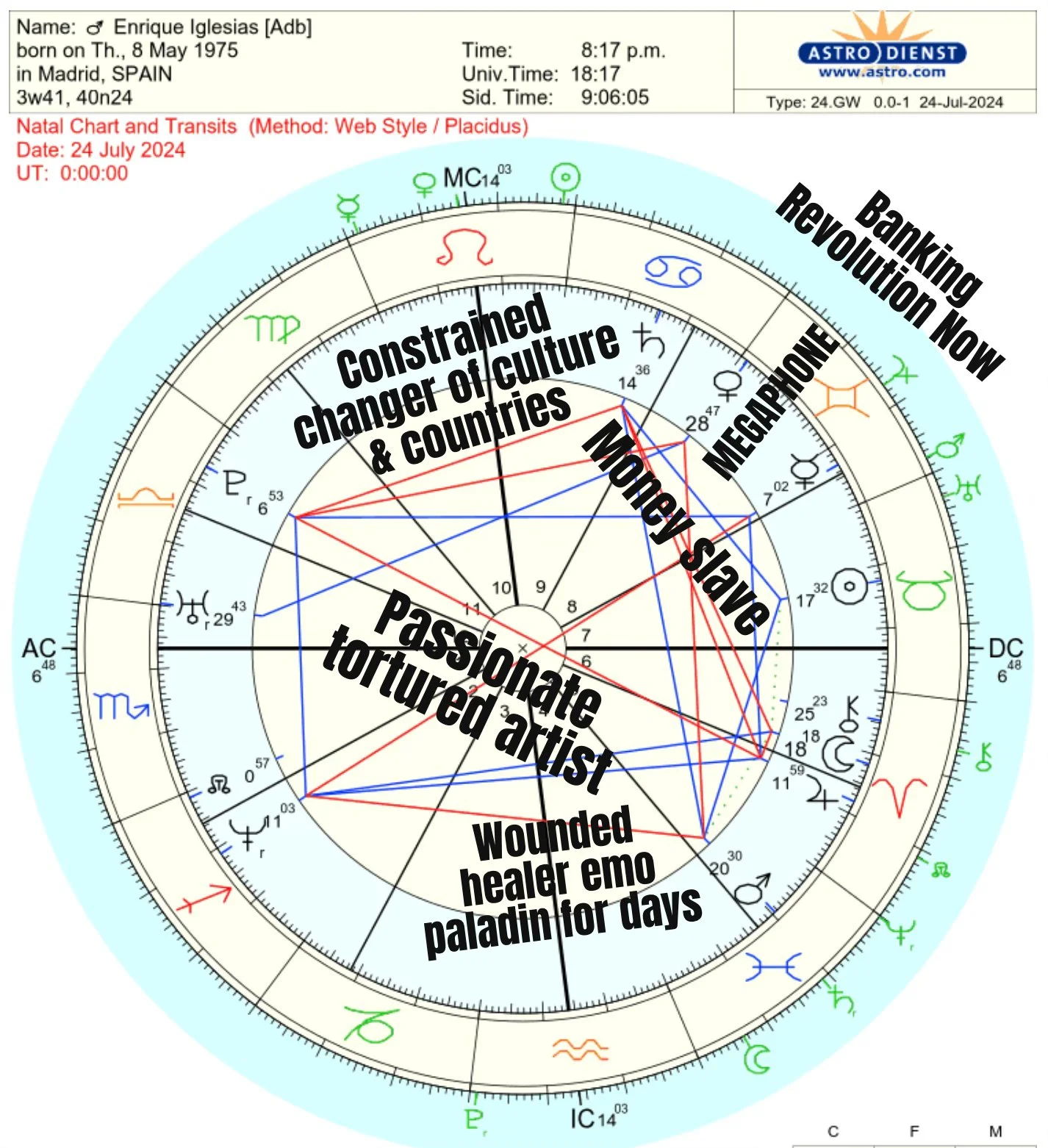 Smoldering Enrique Iglesias July 24, 2024 Below we have the charts of me and Enrique combined. He says there are a few good messages here.
