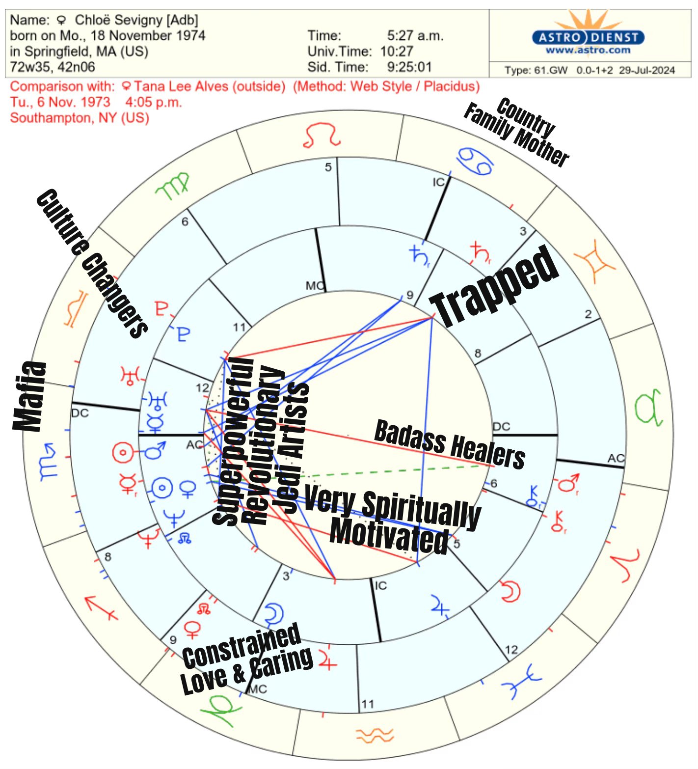 Her charts are unusual because she has such a concentration of “planets” in Scorpio. Like me, she has her Sun in Scorpio - a place of spooky secrets and hidden power. Chloë would not be asking me to do this if she didn’t want to expose the mafia and what they are doing to us.