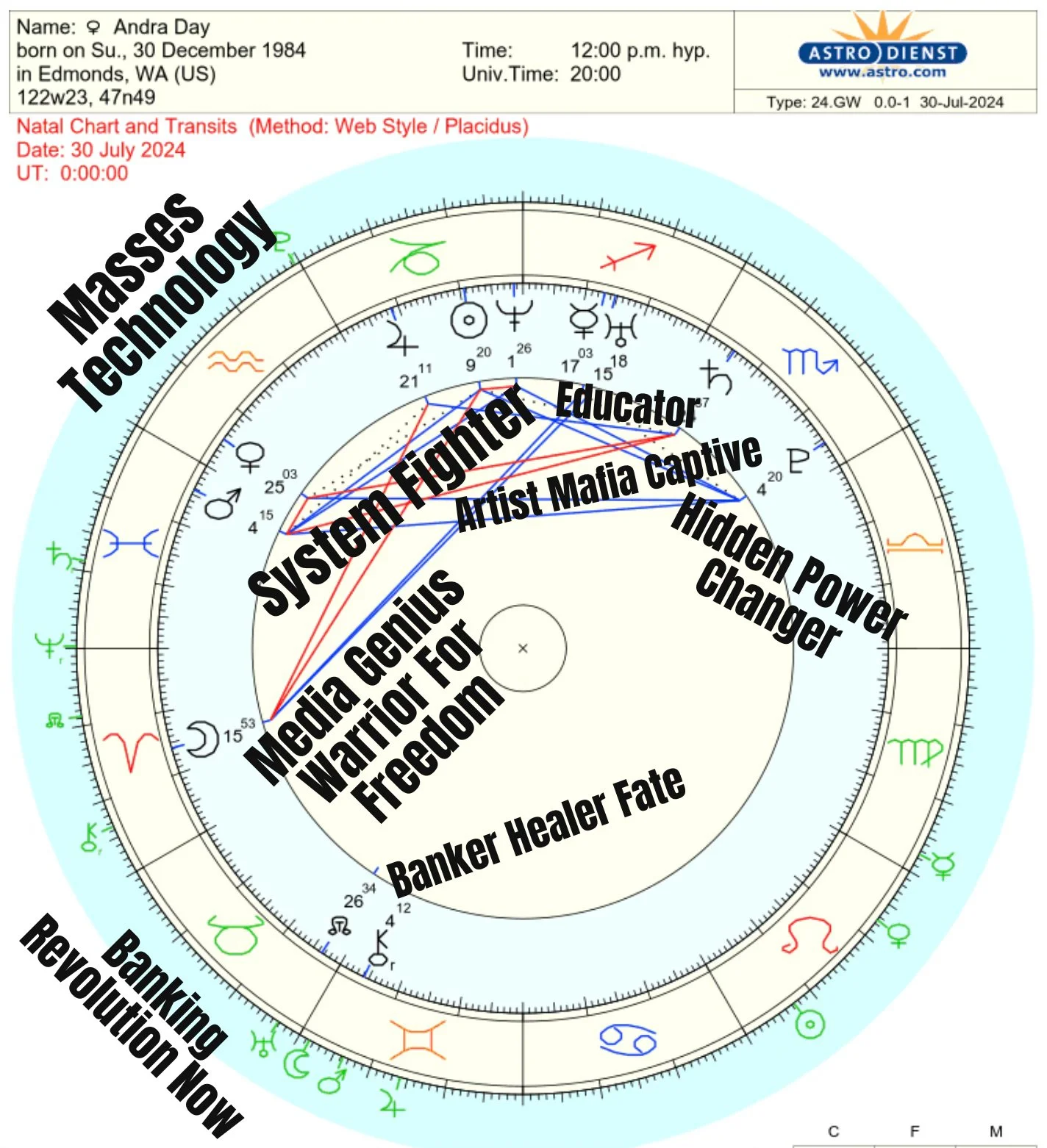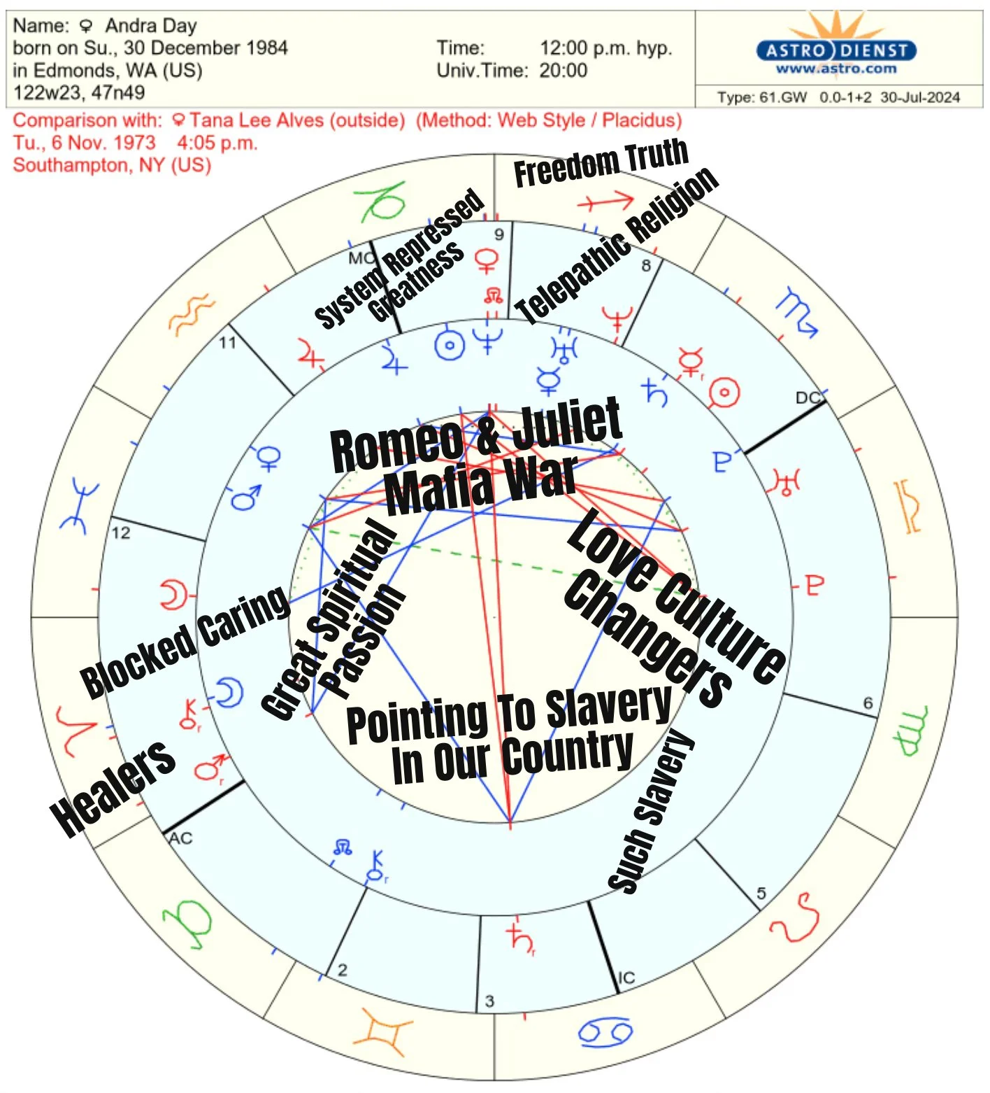 What I see in the charts is what I can perceive otherwise in Andra. She is an empath or some might say an angel trapped by the mafia like the rest of us. I want to thank her for stepping forward to share in this fascinating study.