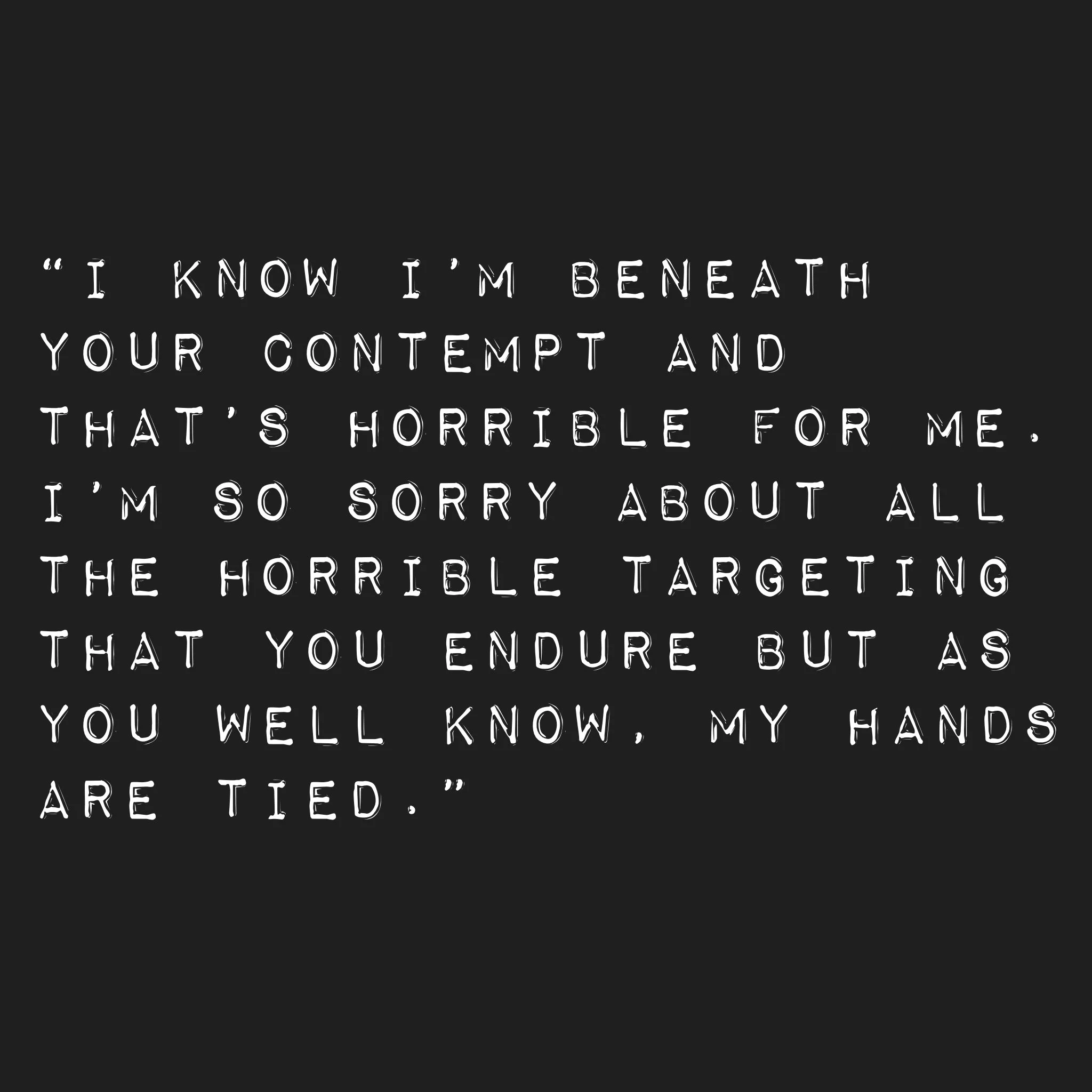 He is genuinely hurt about all this. I’m sorry for my role in that.