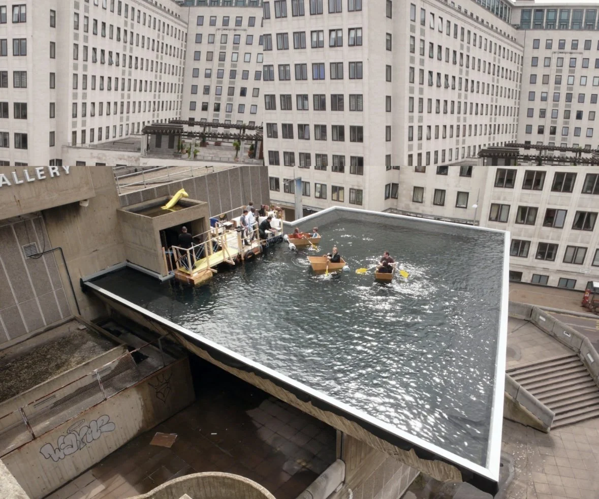 A little context: 4 Austrian artists did a stunt where they removed a window from the World Trade Center and they created a balcony.