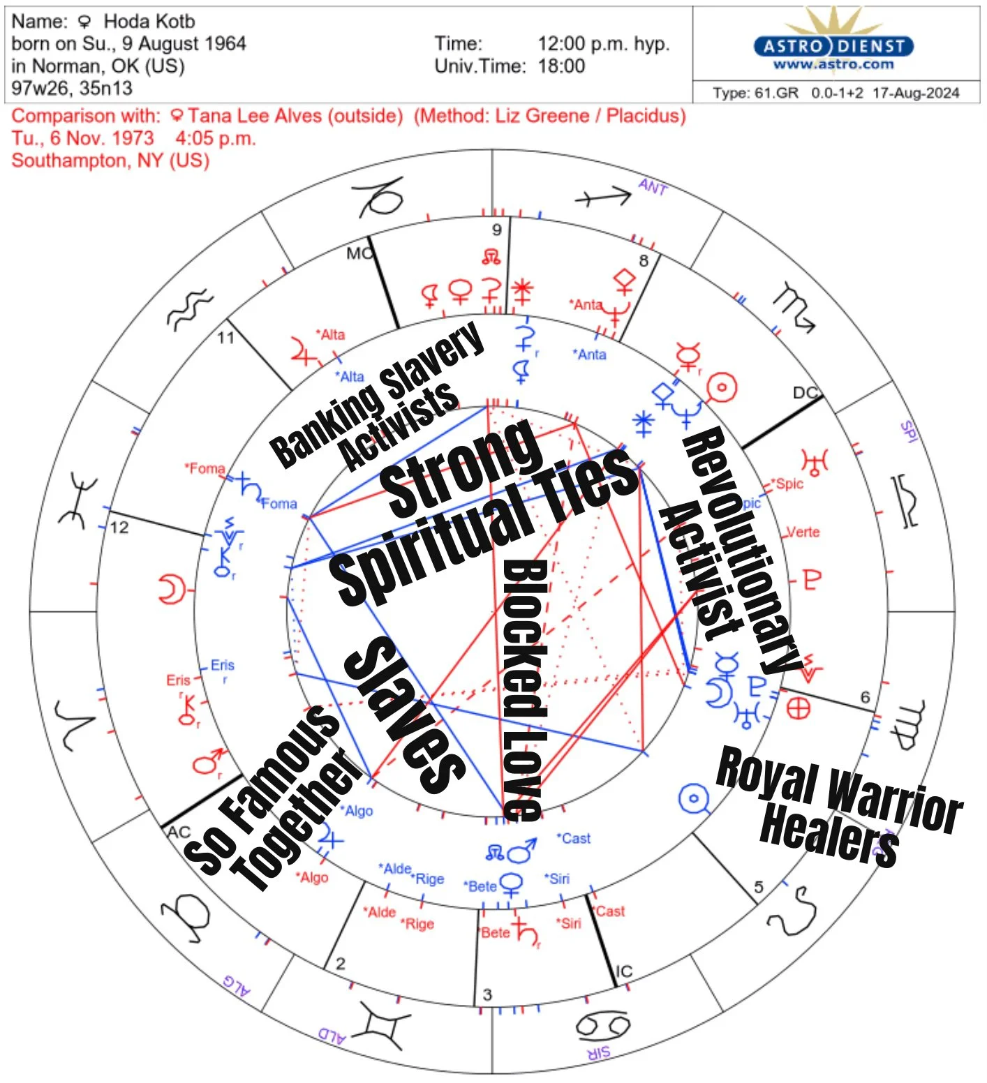 Hoda Kotb August 17, 2024 Our synastry shows spiritual activists informing the public about mafia abuse. Hoda is very fired up about real change and ending institutional abuse perpetrated by monsters like D. Her chart reflects that she is a lightworker on a painful mission.