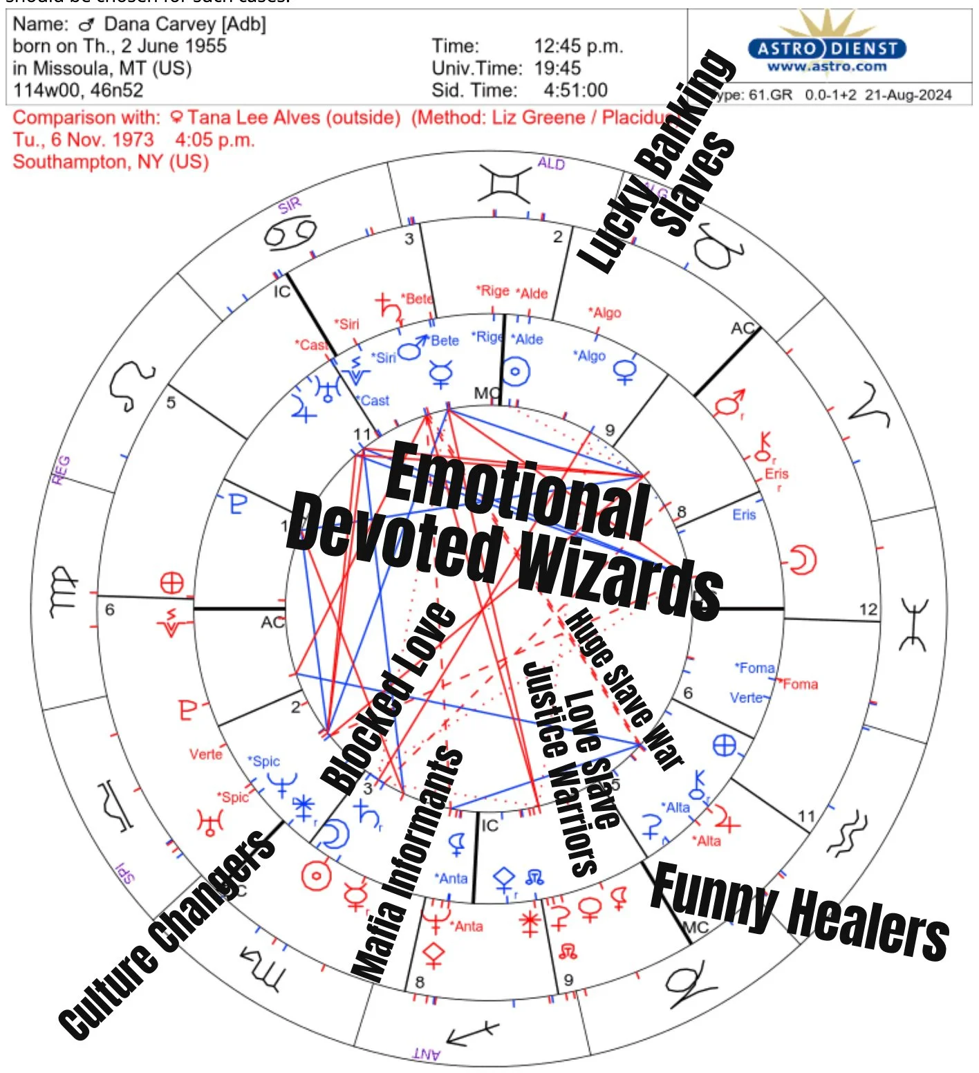 Our synastry shows funny activists who are spiritually connected but we are being blocked by mafia operators.