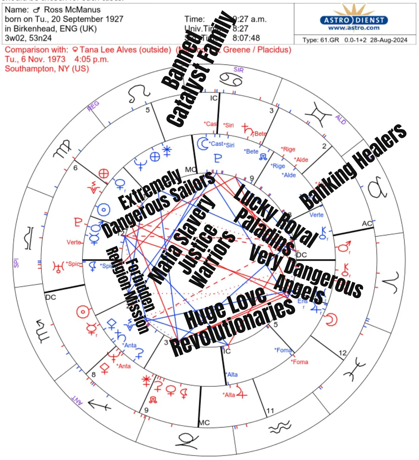 Our synastry shows many spiritual ties and that we are Love Revolutionaries concerning mafia slavery.