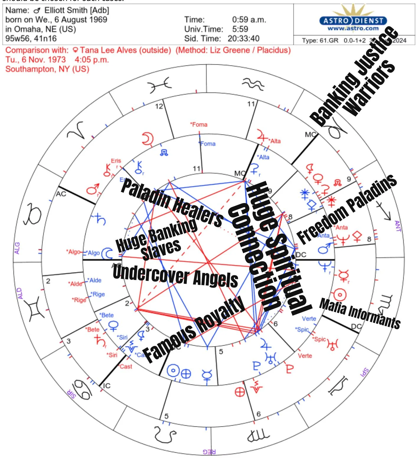 Our synastry shows our deep spiritual ties and that we are banking activists.