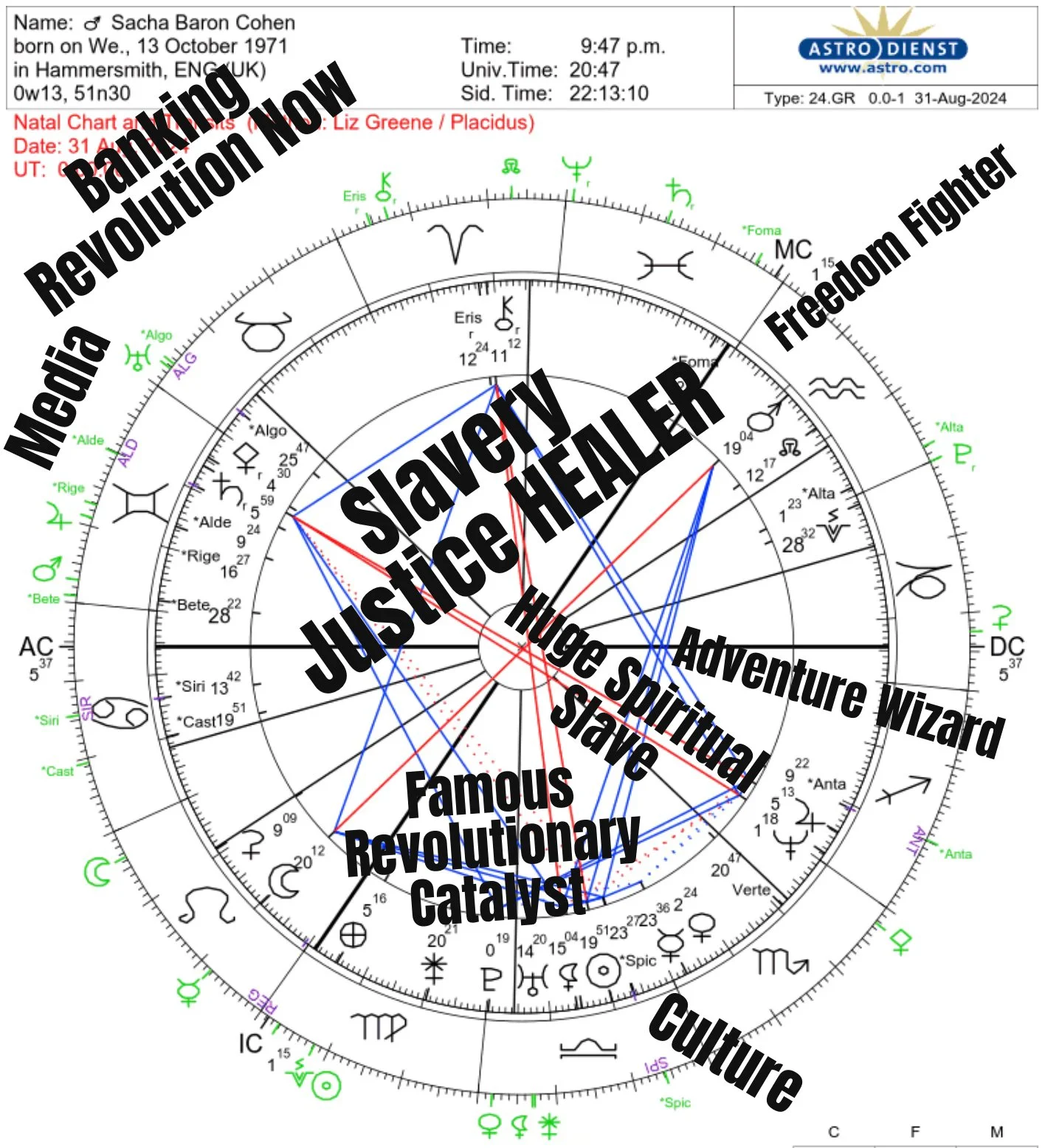 Sacha’s charts reflects that he is on a mission to bring justice concerning slavery and royalty.