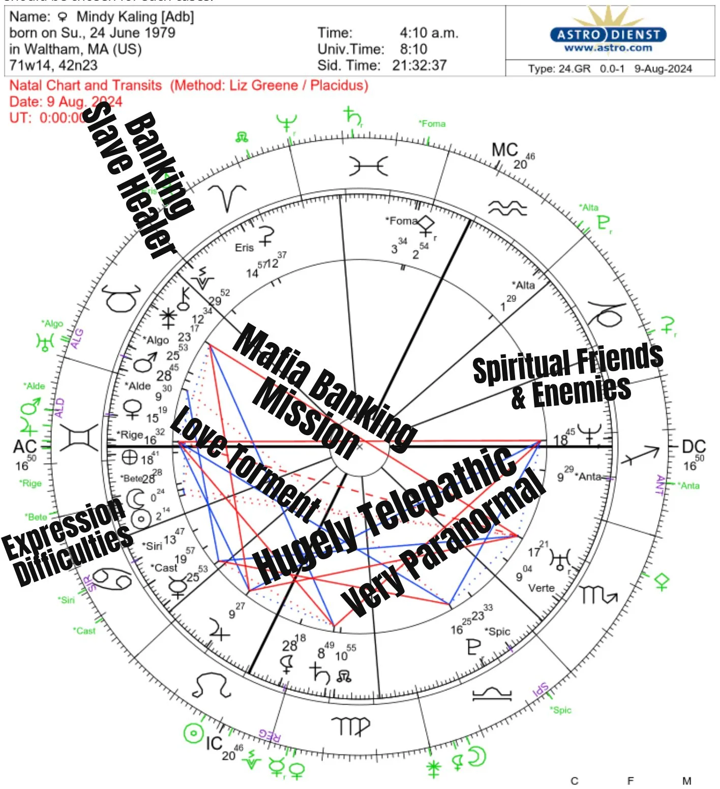 Mindy’s chart shows someone with unusual spiritual powers. Definitely not someone to mess with or provoke.