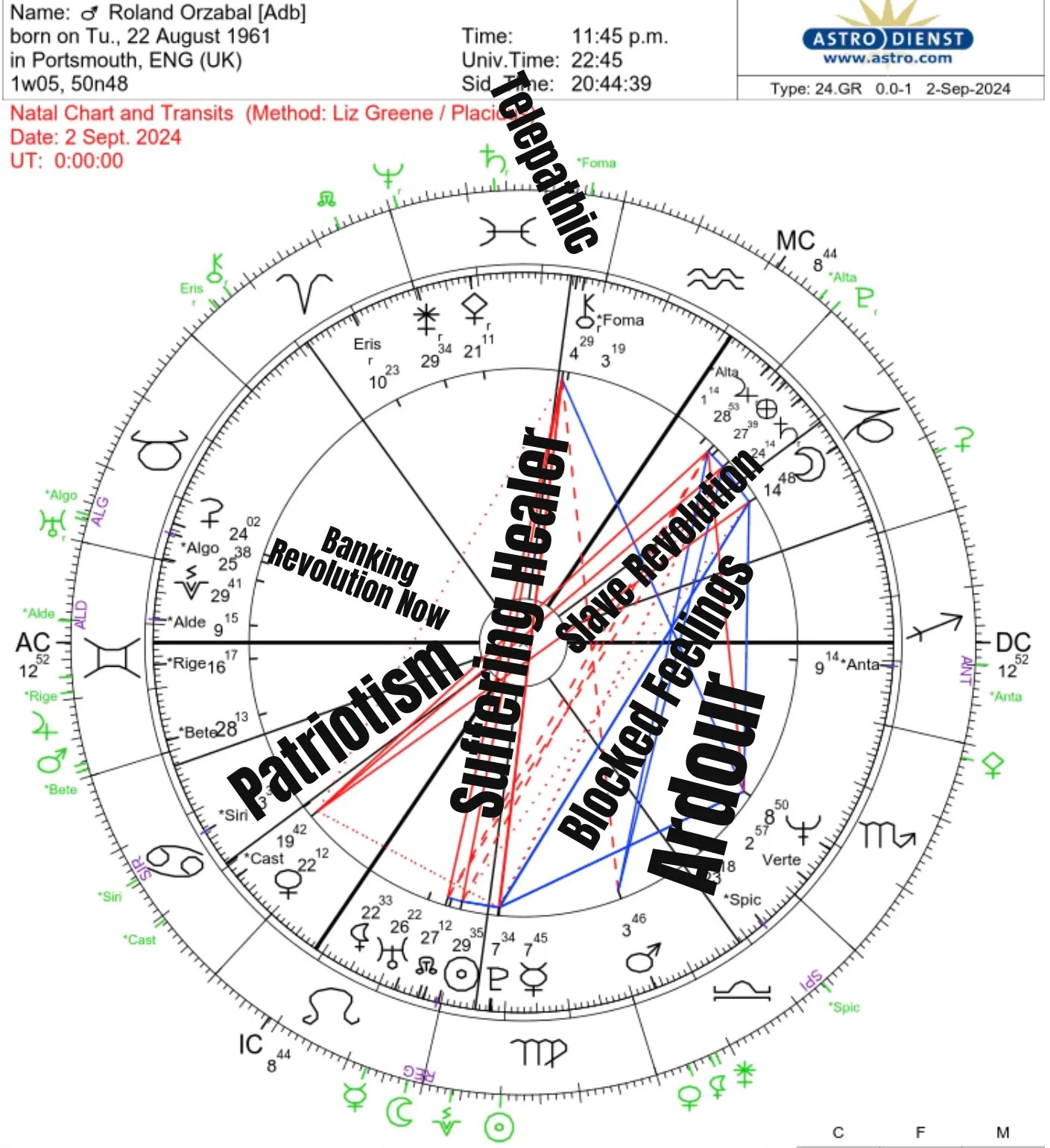 We see a reflection of Roland’s difficult journey in his chart. He is fighting as hard as he can under extremely constrained conditions. Please everyone get involved and tune in spiritually. We are in a new time and anything can happen.