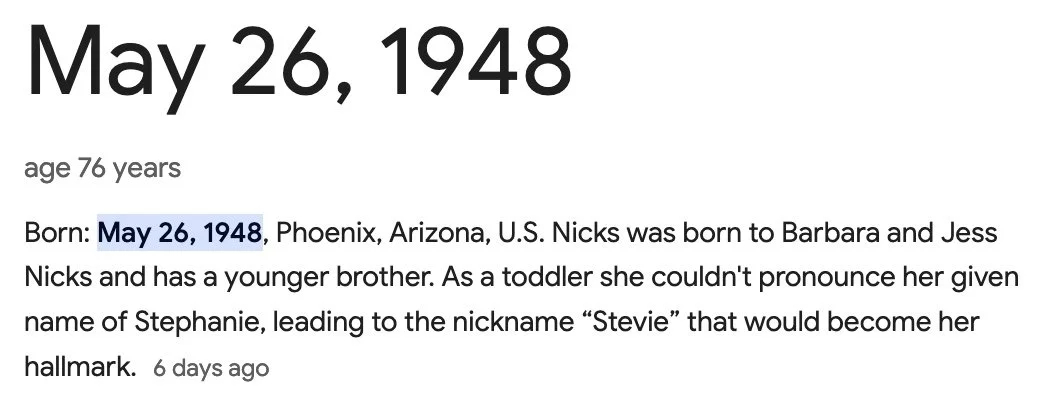 I have to say I’m so stunned Stevie wants to talk to me. I’m very in awe of her. She’s like royalty to me. I wonder if that’s in her charts.