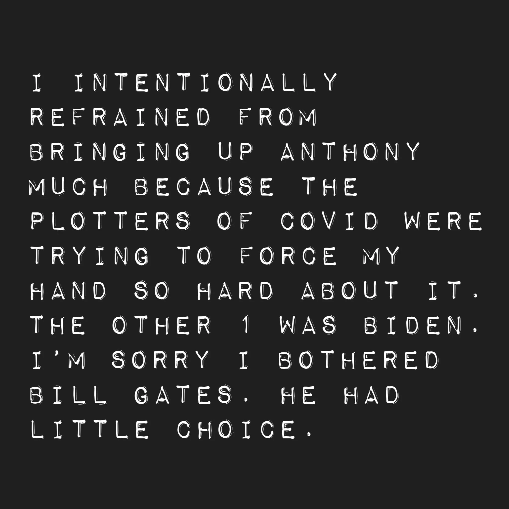 Anthony dictated every word above and I can hear him perfectly. No 1 was more put in front of me to blame for what D did concerning covid. How could I miss that whole sh** show was something to trap and frame me?? D’s gamble in life was that she could keep me from her meal ticket - Elvis.