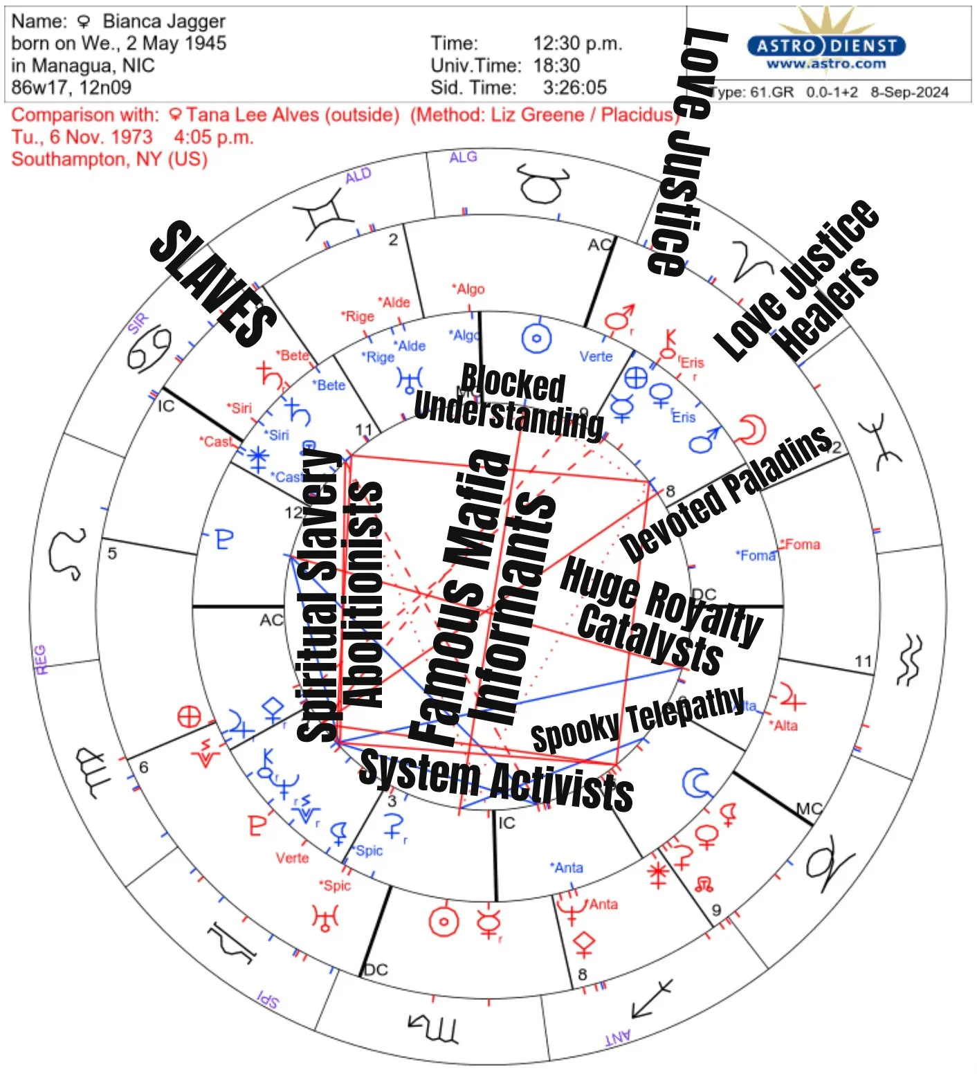 I really am connected to Bianca and our synastry indicates strongly that we are slavery abolitionists. She is saying she is doing what she can but we are all blocked from our futures by D. She can only save her precious hide through murder and trickery and she needs to be stopped.