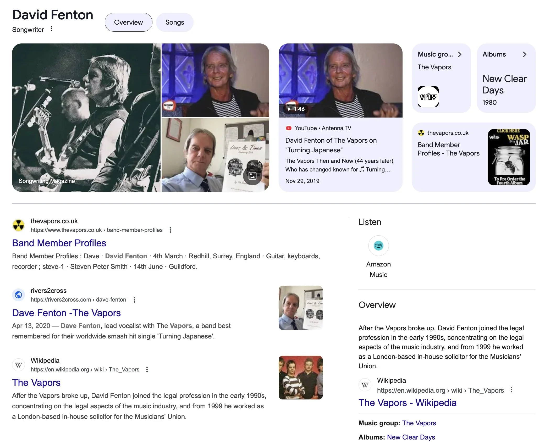 Dave is reaching out to me. He is a musician who became a solicitor - a lawyer to us Americans.
