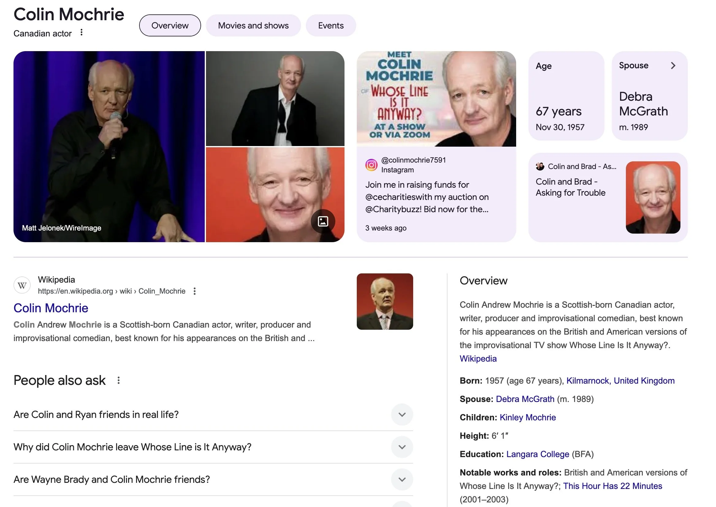 Somehow Colin got me to remember his face from Whose Line Is It Anyway? Is Mochrie really his last name??